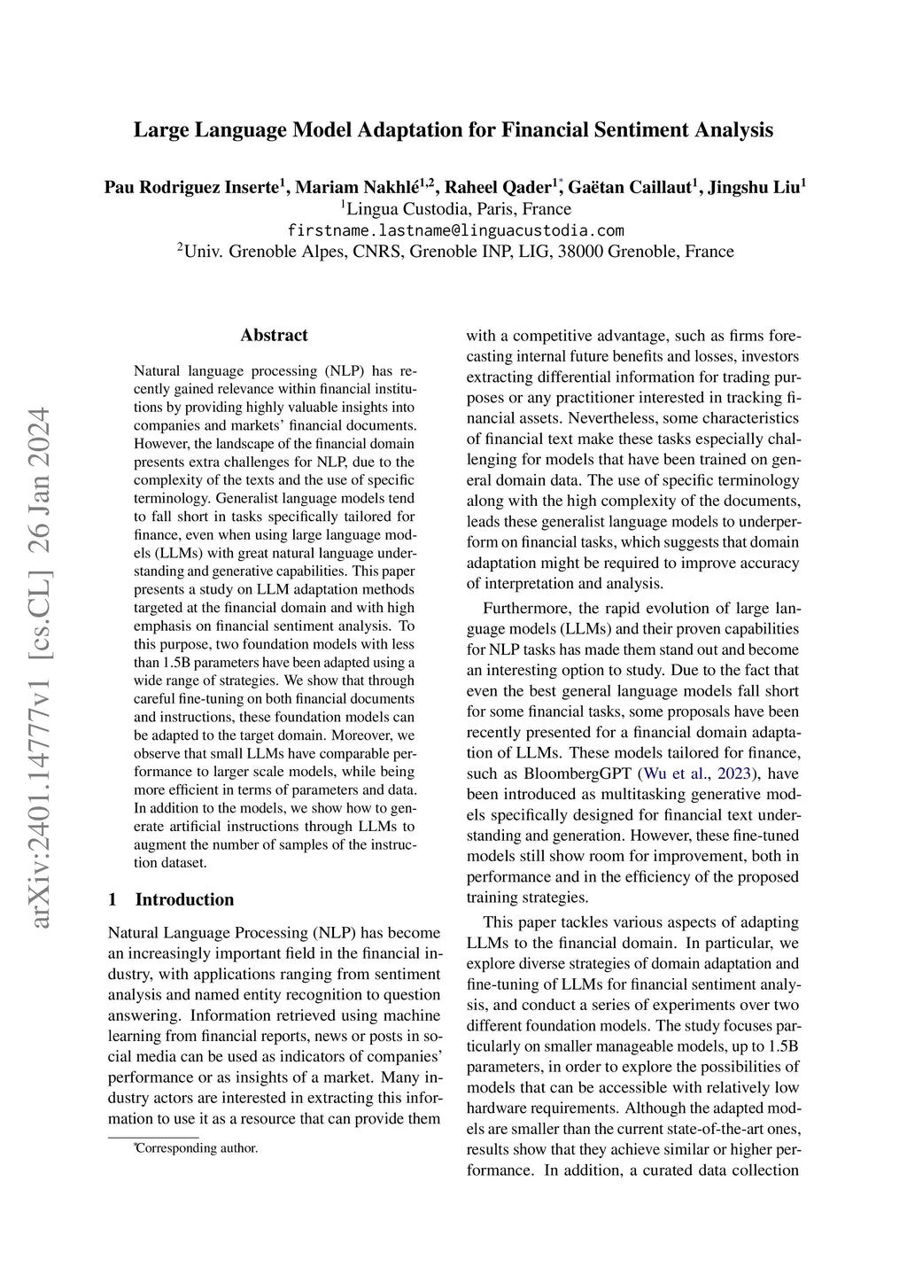 Large Language Model Adaptation for Financial Sentiment Analysis