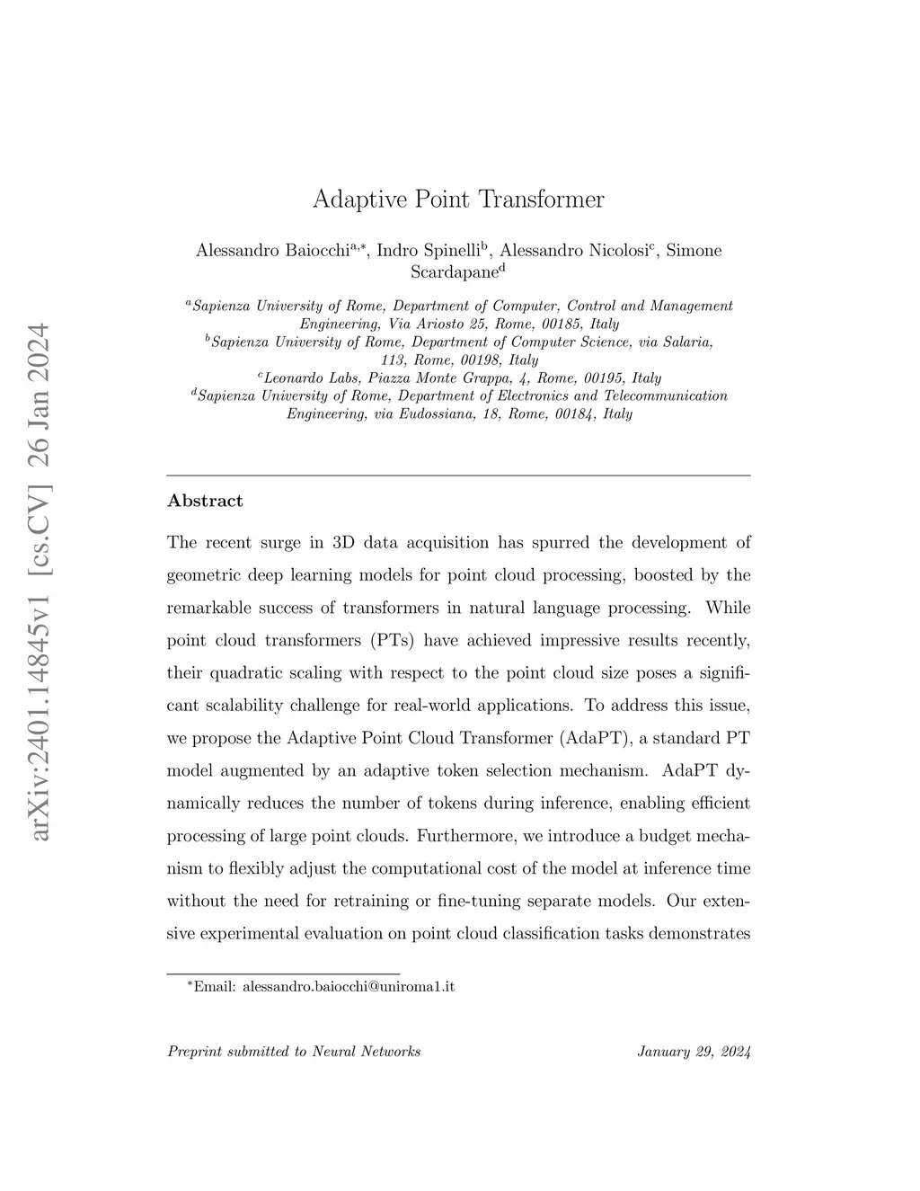 The recent surge in 3D data acquisition has spurred the development of geometric deep learning models for point cloud processing, boosted by the remarkable success of transformers in natural language processing. While point cloud transformers (PTs) have achieved impressive results recently, their quadratic scaling with respect to the point cloud size poses a significant scalability challenge for real-world applications. To address this issue, we propose the Adaptive Point Cloud Transformer (AdaPT), a standard PT model augmented by an adaptive token selection mechanism. AdaPT dynamically reduces the number of tokens during inference, enabling efficient processing of large point clouds. Furthermore, we introduce a budget mechanism to flexibly adjust the computational cost of the model at inference time without the need for retraining or fine-tuning separate models. Our extensive experimental evaluation on point cloud classification tasks demonstrates that AdaPT significantly reduces computational complexity while maintaining competitive accuracy compared to standard PTs. The code for AdaPT is made publicly available.