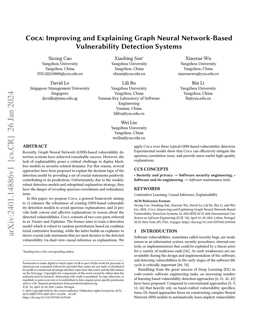 Coca: Improving and Explaining Graph Neural Network-Based Vulnerability