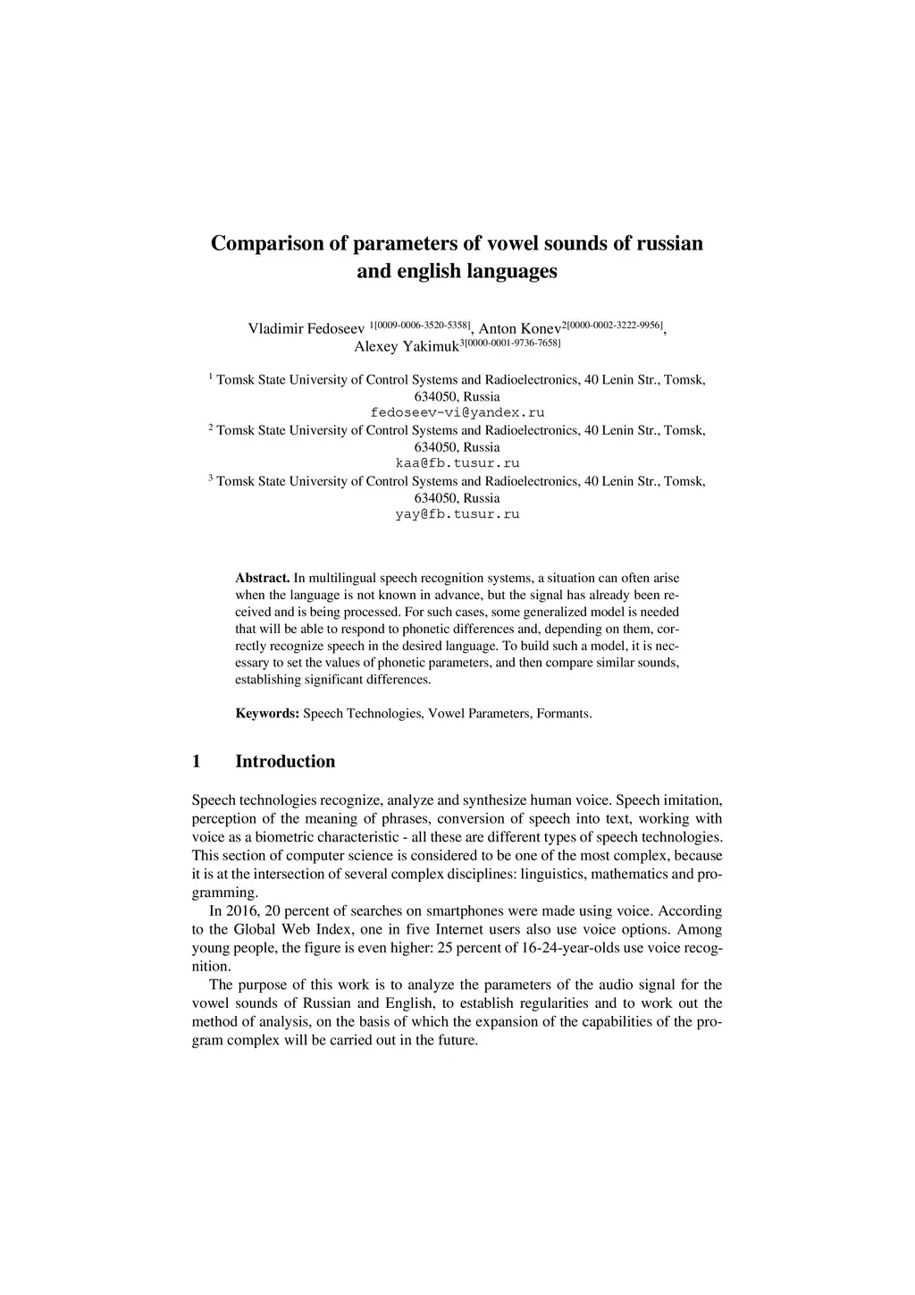 Comparison of parameters of vowel sounds of russian and english