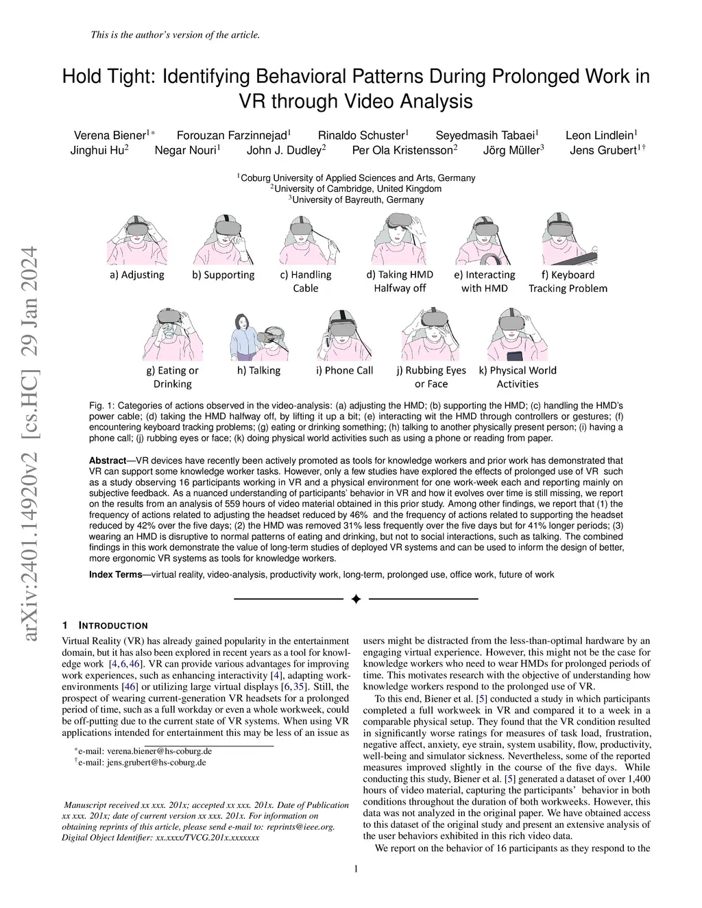 Hold Tight: Identifying Behavioral Patterns During Prolonged Work in VR