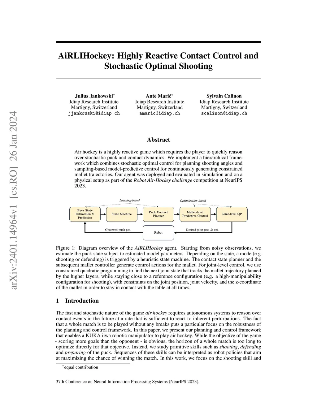 AiRLIHockey: Highly Reactive Contact Control and Stochastic Optimal