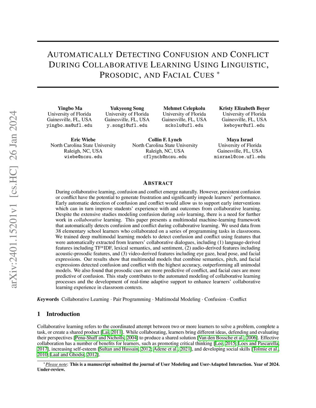Learning Using Linguistic, Prosodic, and Facial Cues