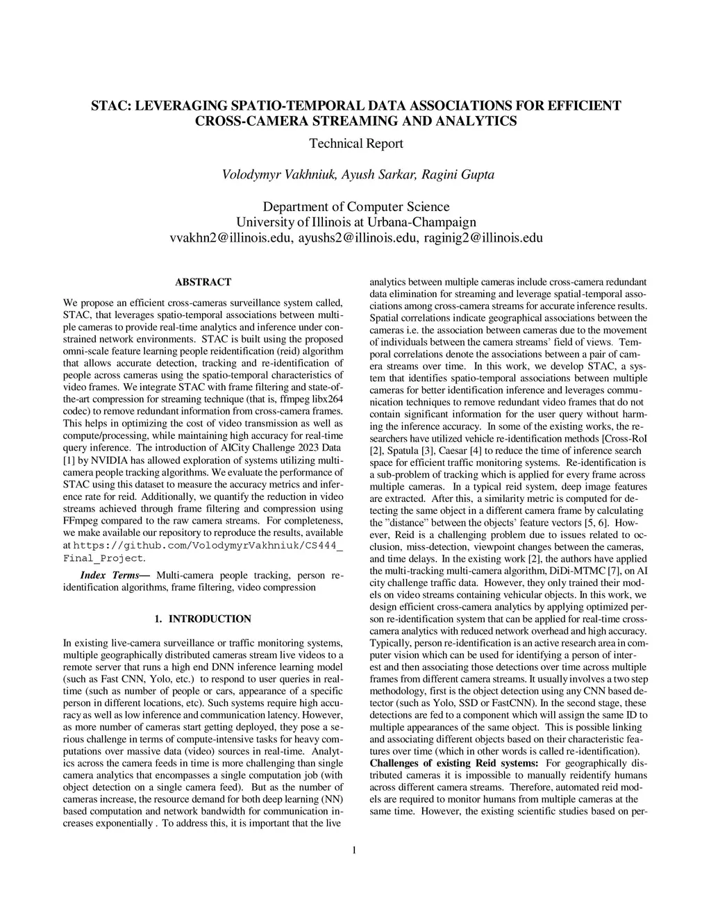 In IoT based distributed network of cameras, real-time multi-camera video analytics is challenged by high bandwidth demands and redundant visual data, creating a fundamental tension where reducing data saves network overhead but can degrade model performance, and vice versa. We present STAC, a cross-cameras surveillance system that leverages spatio-temporal associations for efficient object tracking under constrained network conditions. STAC integrates multi-resolution feature learning, ensuring robustness under variable networked system level optimizations such as frame filtering, FFmpeg-based compression, and Region-of-Interest (RoI) masking, to eliminate redundant content across distributed video streams while preserving downstream model accuracy for object identification and tracking. Evaluated on NVIDIA's AICity Challenge dataset, STAC achieves a 76\% improvement in tracking accuracy and an 8.6x reduction in inference latency over a standard multi-object multi-camera tracking baseline (using YOLOv4 and DeepSORT). Furthermore, 29\% of redundant frames are filtered, significantly reducing data volume without compromising inference quality.