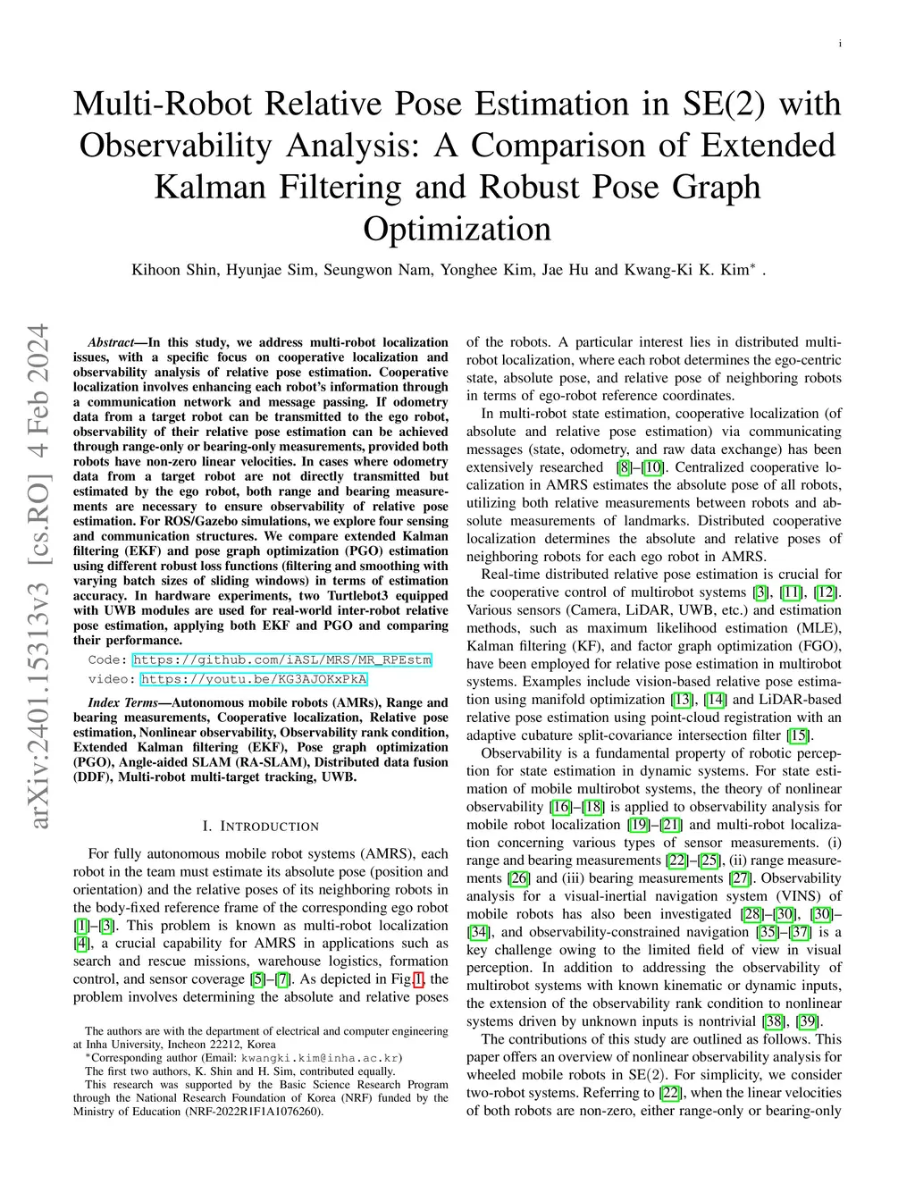 Multi-Robot Relative Pose Estimation in SE(2) with Observability