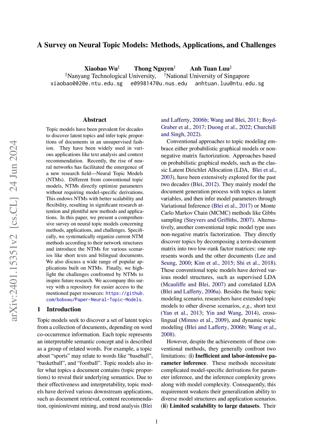 A Survey on Neural Topic Models: Methods, Applications, and Challenges