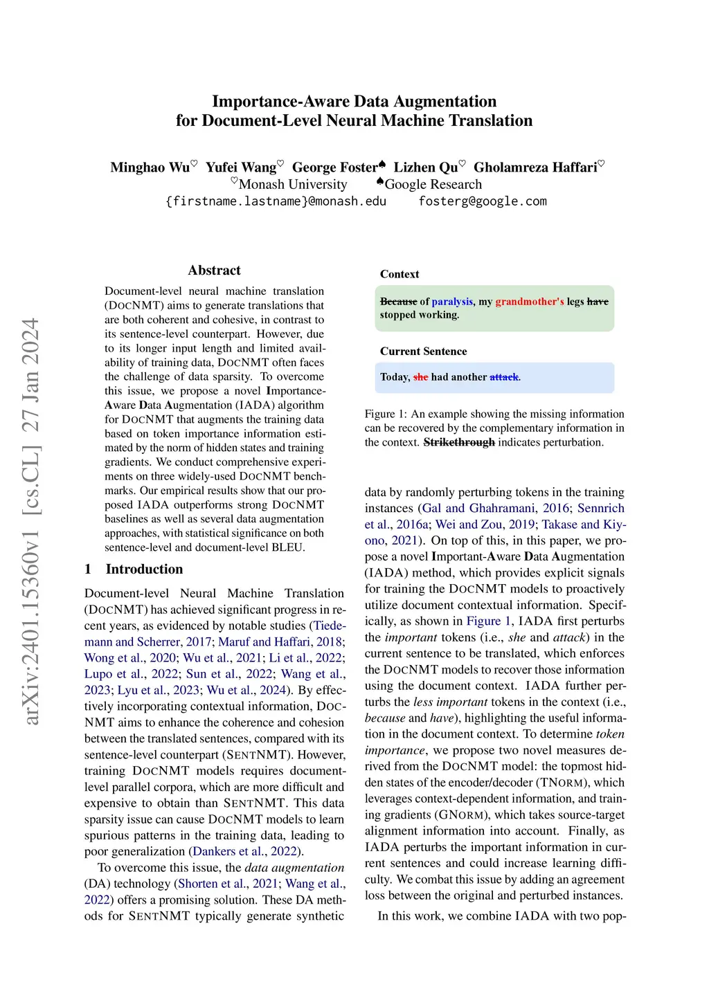Importance-Aware Data Augmentation for Document-Level Neural Machine