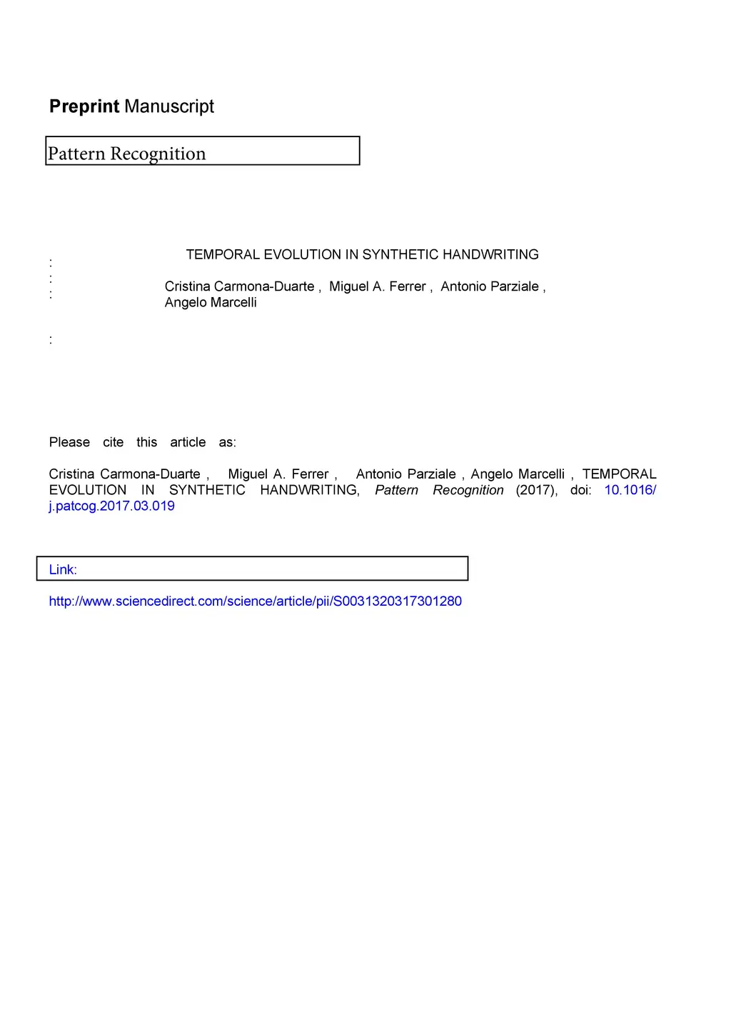 New methods for generating synthetic handwriting images for biometric applications have recently been developed. The temporal evolution of handwriting from childhood to adulthood is usually left unexplored in these works. This paper proposes a novel methodology for including temporal evolution in a handwriting synthesizer by means of simplifying the text trajectory plan and handwriting dynamics. This is achieved through a tailored version of the kinematic theory of rapid human movements and the neuromotor inspired handwriting synthesizer. The realism of the proposed method has been evaluated by comparing the temporal evolution of real and synthetic samples both quantitatively and subjectively. The quantitative test is based on a visual perception algorithm that compares the letter variability and the number of strokes in the real and synthetic handwriting produced at different ages. In the subjective test, 30 people are asked to evaluate the perceived realism of the evolution of the synthetic handwriting.