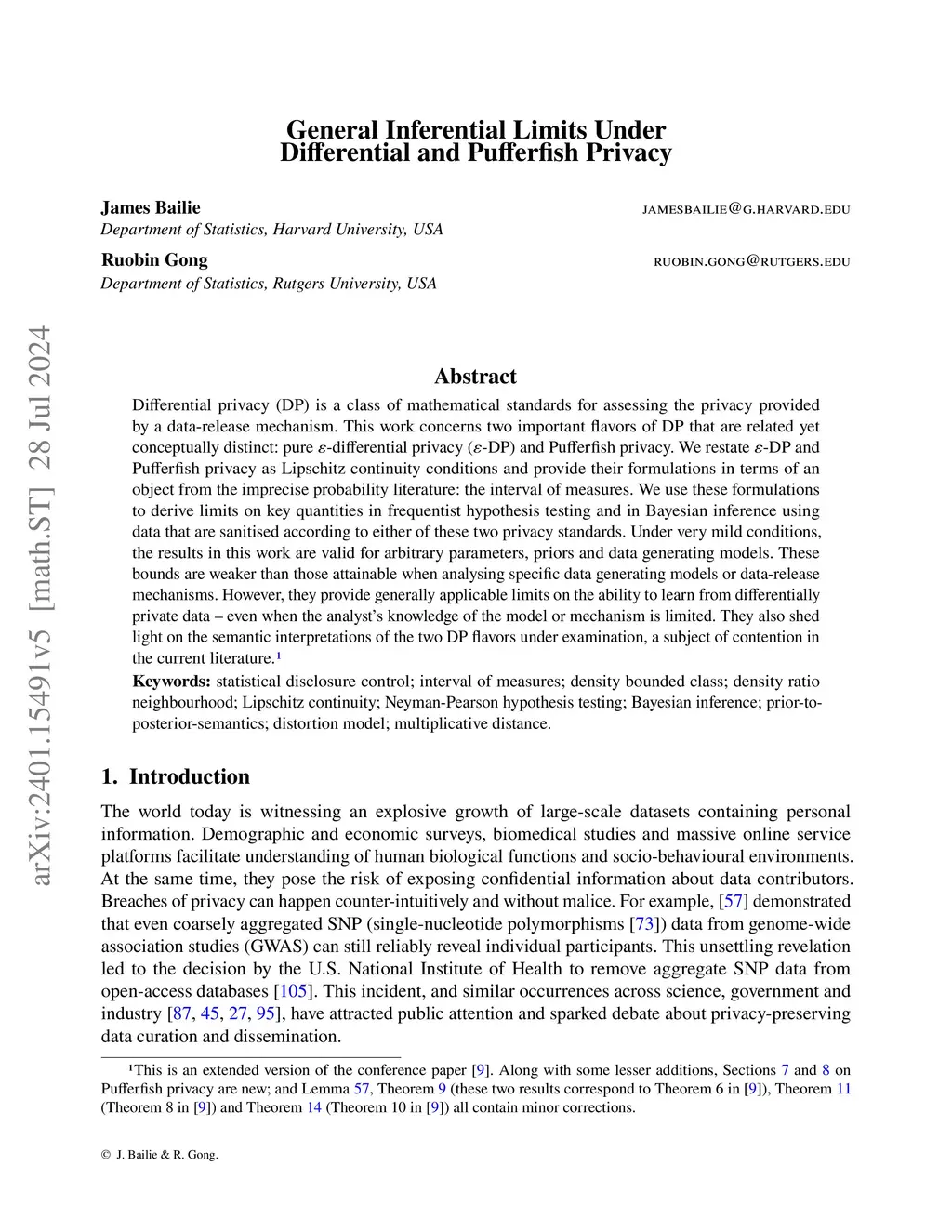 General Inferential Limits Under Differential and Pufferfish Privacy