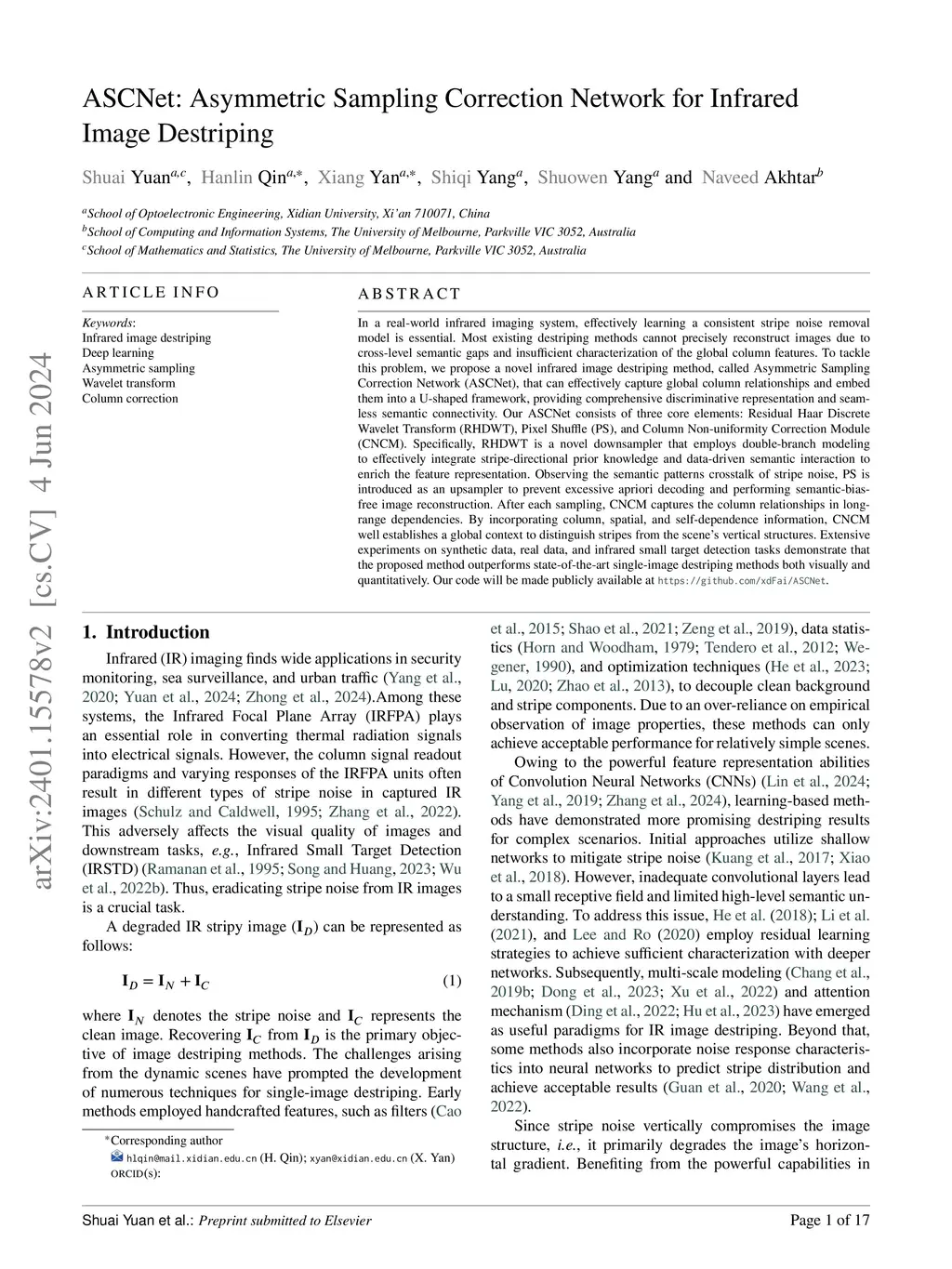 ASCNet: Asymmetric Sampling Correction Network for Infrared Image Destriping
