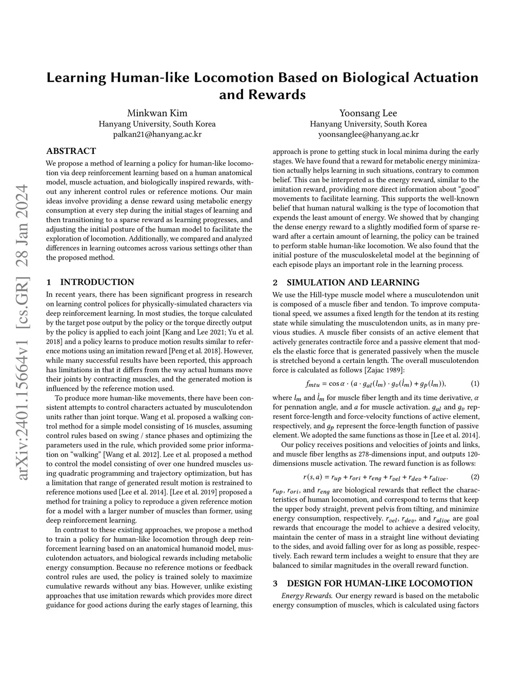 Learning Human-like Locomotion Based on Biological Actuation and Rewards