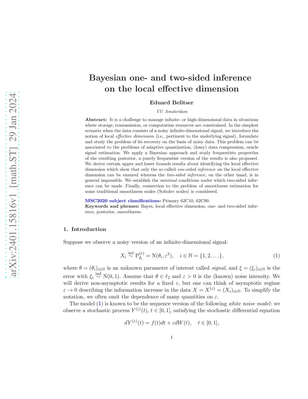 It is a challenge to manage infinite- or high-dimensional data in situations where storage, transmission, or computation resources are constrained. In the simplest scenario when the data consists of a noisy infinite-dimensional signal, we introduce the notion of local \emph{effective dimension} (i.e., pertinent to the underlying signal), formulate and study the problem of its recovery on the basis of noisy data. This problem can be associated to the problems of adaptive quantization, (lossy) data compression, oracle signal estimation. We apply a Bayesian approach and study frequentists properties of the resulting posterior, a purely frequentist version of the results is also proposed. We derive certain upper and lower bounds results about identifying the local effective dimension which show that only the so called \emph{one-sided inference} on the local effective dimension can be ensured whereas the \emph{two-sided inference}, on the other hand, is in general impossible. We establish the \emph{minimal} conditions under which two-sided inference can be made. Finally, connection to the problem of smoothness estimation for some traditional smoothness scales (Sobolev scales) is considered.