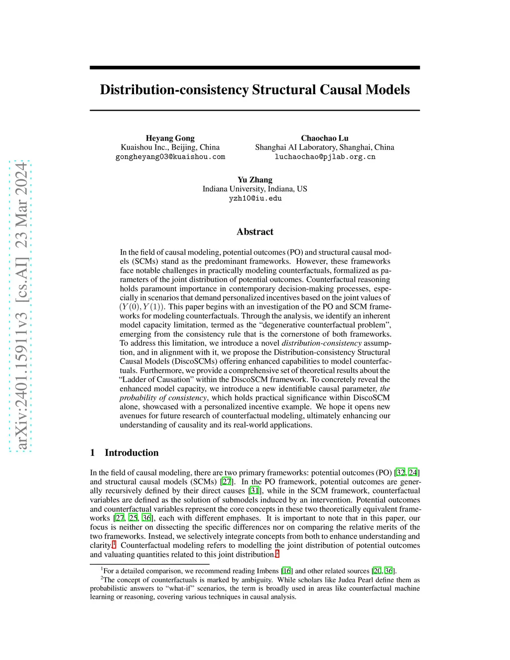 In the field of causal modeling, potential outcomes (PO) and structural causal models (SCMs) stand as the predominant frameworks. However, these frameworks face notable challenges in practically modeling counterfactuals, formalized as parameters of the joint distribution of potential outcomes. Counterfactual reasoning holds paramount importance in contemporary decision-making processes, especially in scenarios that demand personalized incentives based on the joint values of . This paper begins with an investigation of the PO and SCM frameworks for modeling counterfactuals. Through the analysis, we identify an inherent model capacity limitation, termed as the ``degenerative counterfactual problem'', emerging from the consistency rule that is the cornerstone of both frameworks. To address this limitation, we introduce a novel \textit{distribution-consistency} assumption, and in alignment with it, we propose the Distribution-consistency Structural Causal Models (DiscoSCMs) offering enhanced capabilities to model counterfactuals. To concretely reveal the enhanced model capacity, we introduce a new identifiable causal parameter, \textit{the probability of consistency}, which holds practical significance within DiscoSCM alone, showcased with a personalized incentive example. Furthermore, we provide a comprehensive set of theoretical results about the ``Ladder of Causation'' within the DiscoSCM framework. We hope it opens new avenues for future research of counterfactual modeling, ultimately enhancing our understanding of causality and its real-world applications.