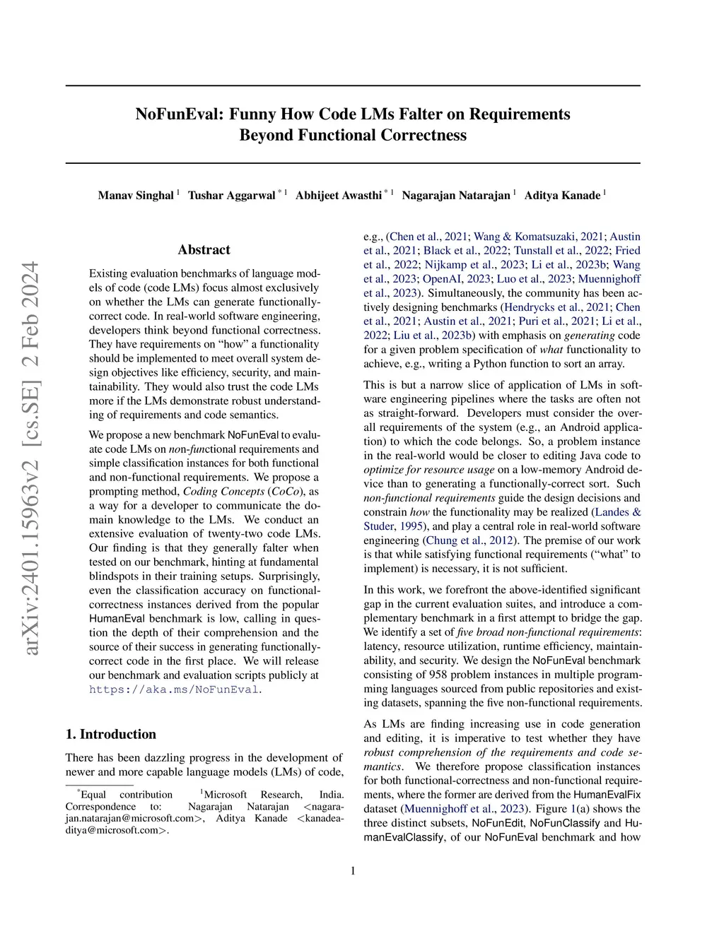 NoFunEval: Funny How Code LMs Falter on Requirements Beyond Functional