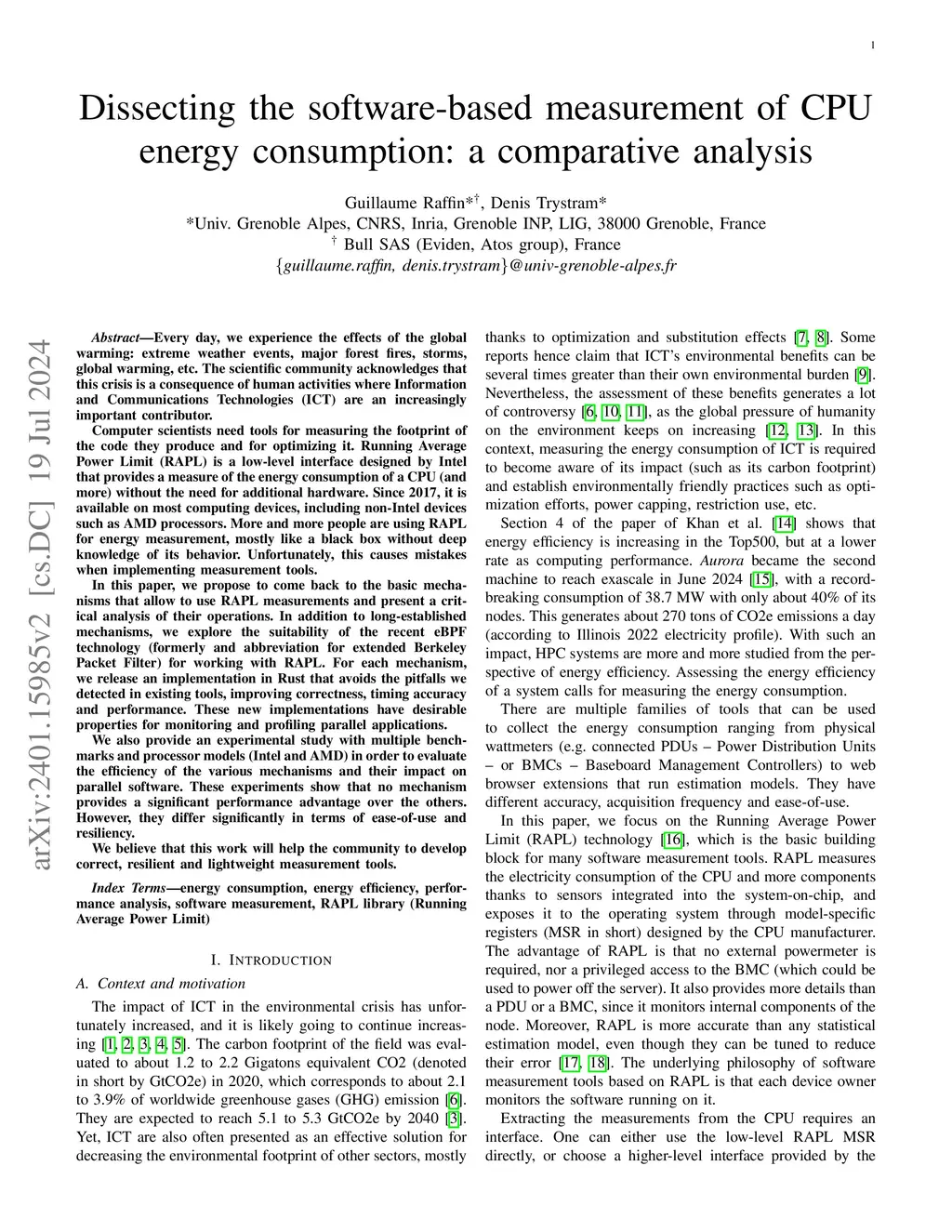 Every day, we experience the effects of the global warming: extreme weather events, major forest fires, storms, global warming, etc.The scientific community acknowledges that this crisis is a consequence of human activities where Information and Communications Technologies (ICT) are an increasingly important contributor.Computer scientists need tools for measuring the footprint of the code they produce and for optimizing it. Running Average Power Limit (RAPL) is a low-level interface designed by Intel that provides a measure of the energy consumption of a CPU (and more) without the need for additional hardware. Since 2017, it is available on most computing devices, including non-Intel devices such as AMD processors.More and more people are using RAPL for energy measurement, mostly like a black box without deep knowledge of its behavior.Unfortunately, this causes mistakes when implementing measurement tools.In this paper, we propose to come back to the basic mechanisms that allow to use RAPL measurements and present a critical analysis of their operations. In addition to long-established mechanisms, we explore the suitability of the recent eBPF technology (formerly and abbreviation for extended Berkeley Packet Filter) for working with RAPL.For each mechanism, we release an implementation in Rust that avoids the pitfalls we detected in existing tools, improving correctness, timing accuracy and performance. These new implementations have desirable properties for monitoring and profiling parallel applications.We also provide an experimental study with multiple benchmarks and processor models (Intel and AMD) in order to evaluate the efficiency of the various mechanisms and their impact on parallel software.These experiments show that no mechanism provides a significant performance advantage over the others. However, they differ significantly in terms of ease-of-use and resiliency.We believe that this work will help the community to develop correct, resilient and lightweight measurement tools.