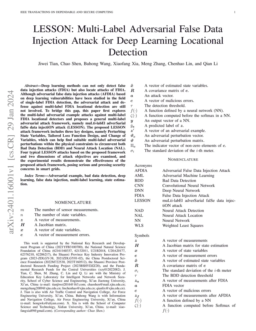 LESSON: Multi-Label Adversarial False Data Injection Attack for Deep