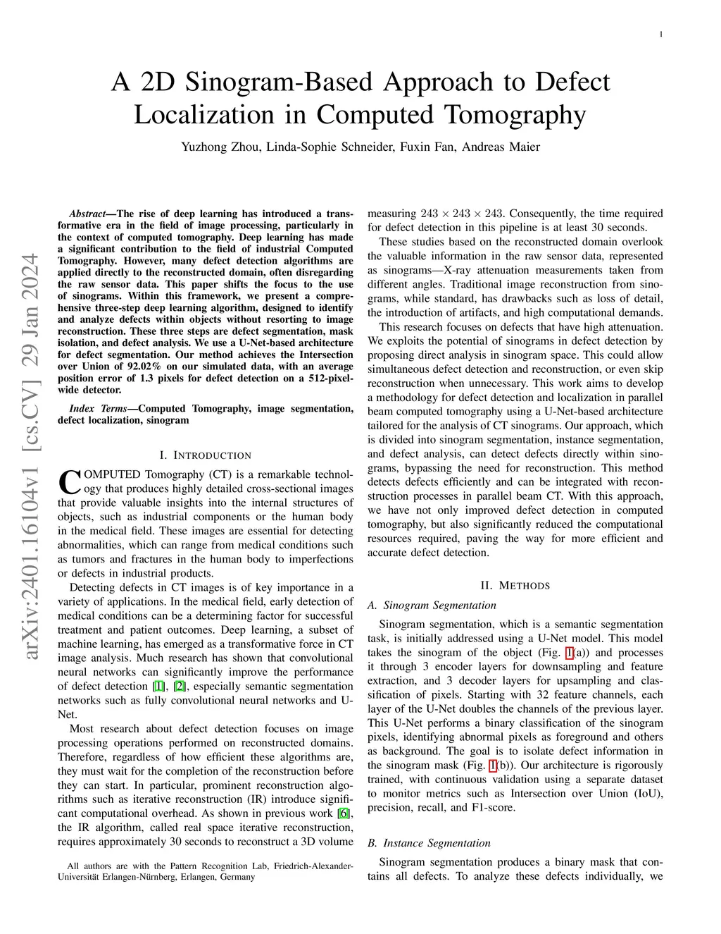 A 2D Sinogram-Based Approach to Defect Localization in Computed