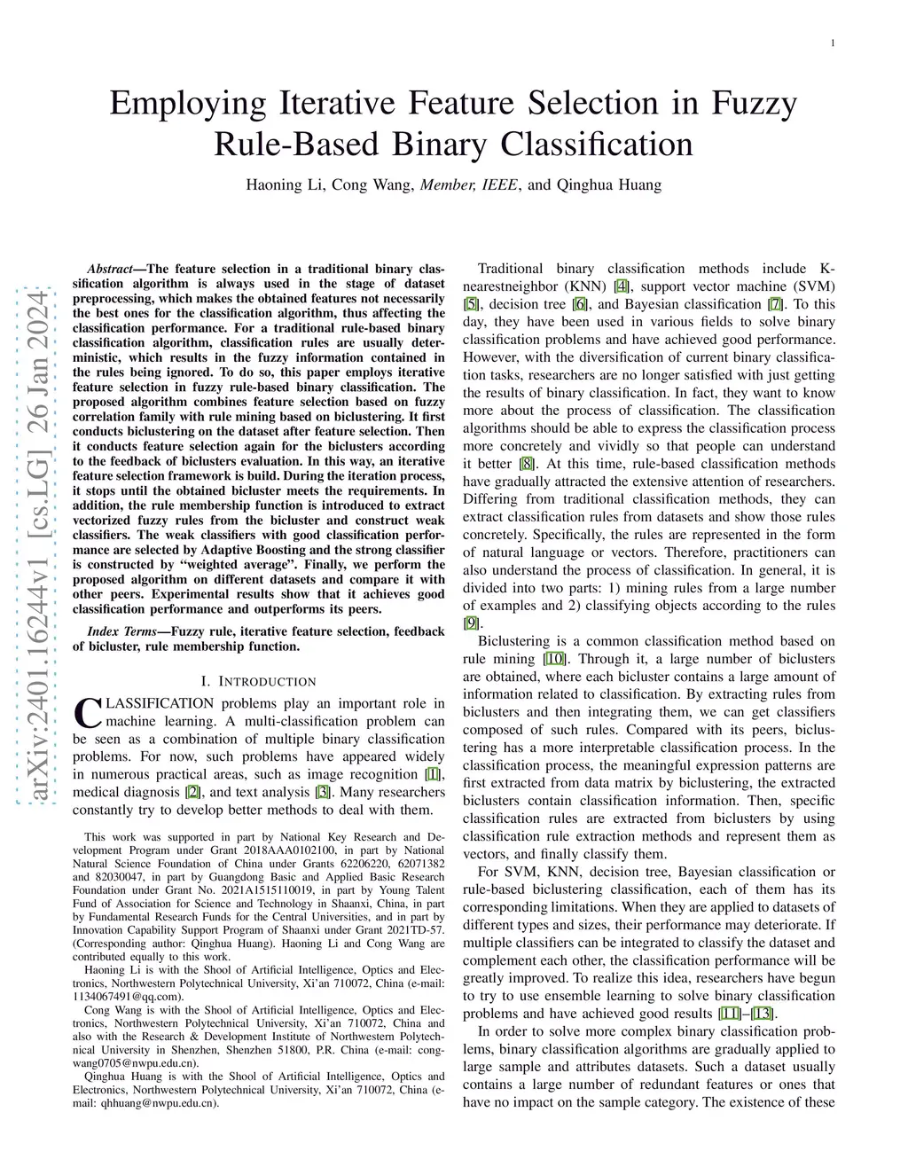 Employing Iterative Feature Selection in Fuzzy Rule-Based Binary