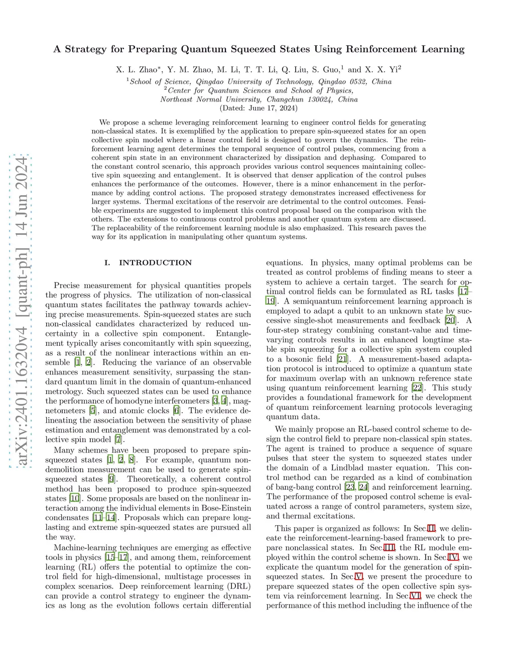 We propose a scheme leveraging reinforcement learning to engineer control fields for generating non-classical states. It is exemplified by the application to prepare spin-squeezed states for an open collective spin model where a linear control field is designed to govern the dynamics. The reinforcement learning agent determines the temporal sequence of control pulses, commencing from a coherent spin state in an environment characterized by dissipation and dephasing. Compared to the constant control scenario, this approach provides various control sequences maintaining collective spin squeezing and entanglement. It is observed that denser application of the control pulses enhances the performance of the outcomes. However, there is a minor enhancement in the performance by adding control actions. The proposed strategy demonstrates increased effectiveness for larger systems. Thermal excitations of the reservoir are detrimental to the control outcomes. Feasible experiments are suggested to implement this control proposal based on the comparison with the others. The extensions to continuous control problems and another quantum system are discussed. The replaceability of the reinforcement learning module is also emphasized. This research paves the way for its application in manipulating other quantum systems.