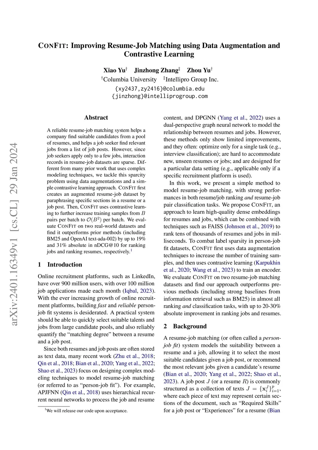 ConFit: Improving Resume-Job Matching using Data Augmentation and