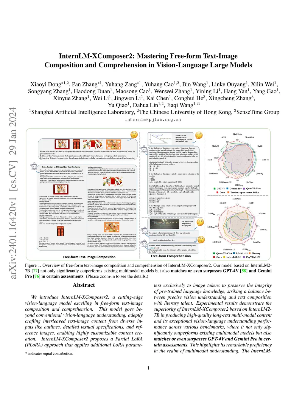 We introduce InternLM-XComposer2, a cutting-edge vision-language model excelling in free-form text-image composition and comprehension. This model goes beyond conventional vision-language understanding, adeptly crafting interleaved text-image content from diverse inputs like outlines, detailed textual specifications, and reference images, enabling highly customizable content creation. InternLM-XComposer2 proposes a Partial LoRA (PLoRA) approach that applies additional LoRA parameters exclusively to image tokens to preserve the integrity of pre-trained language knowledge, striking a balance between precise vision understanding and text composition with literary talent. Experimental results demonstrate the superiority of InternLM-XComposer2 based on InternLM2-7B in producing high-quality long-text multi-modal content and its exceptional vision-language understanding performance across various benchmarks, where it not only significantly outperforms existing multimodal models but also matches or even surpasses GPT-4V and Gemini Pro in certain assessments. This highlights its remarkable proficiency in the realm of multimodal understanding. The InternLM-XComposer2 model series with 7B parameters are publicly available at https://github.com/InternLM/InternLM-XComposer.