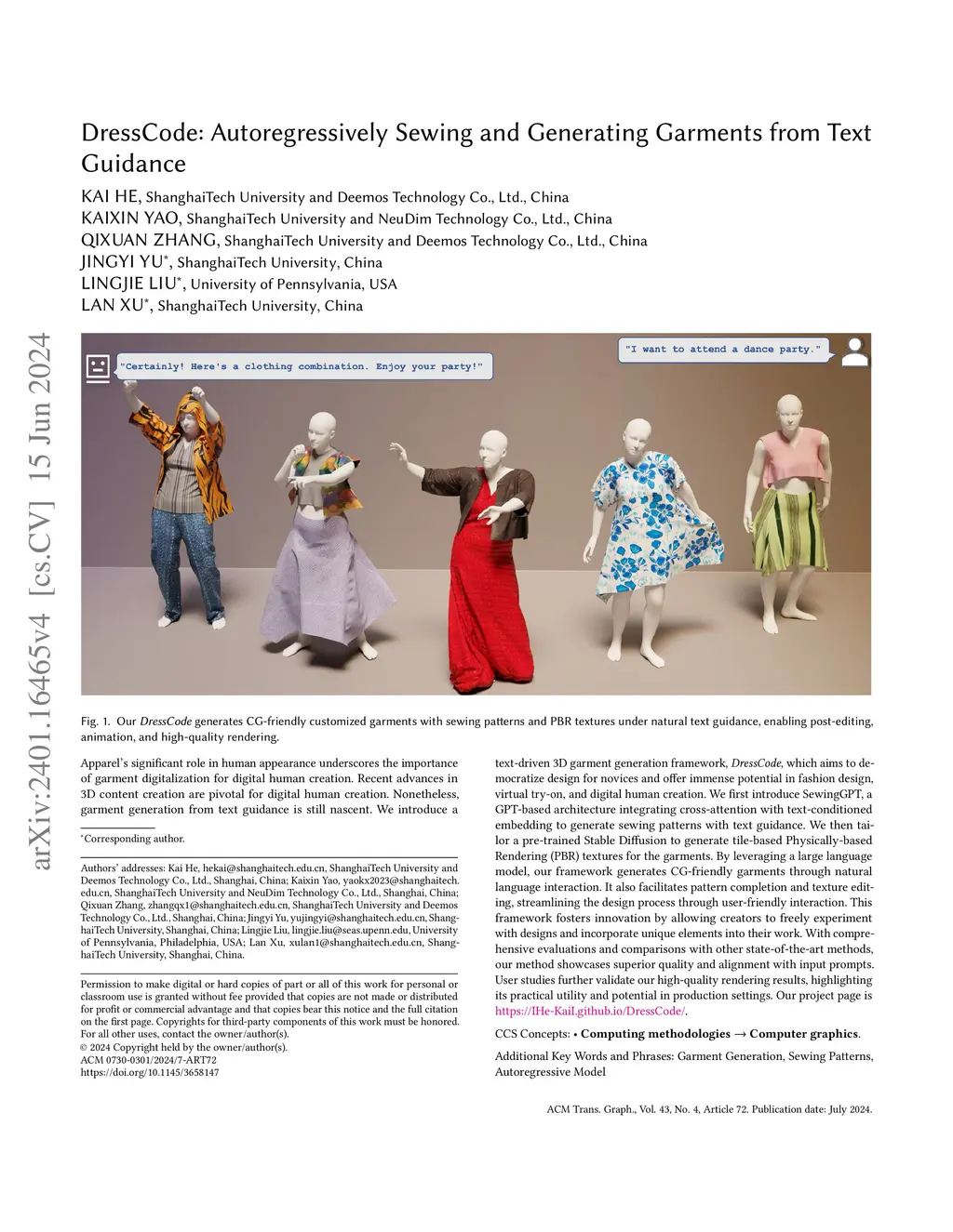 DressCode: Autoregressively Sewing and Generating Garments from Text