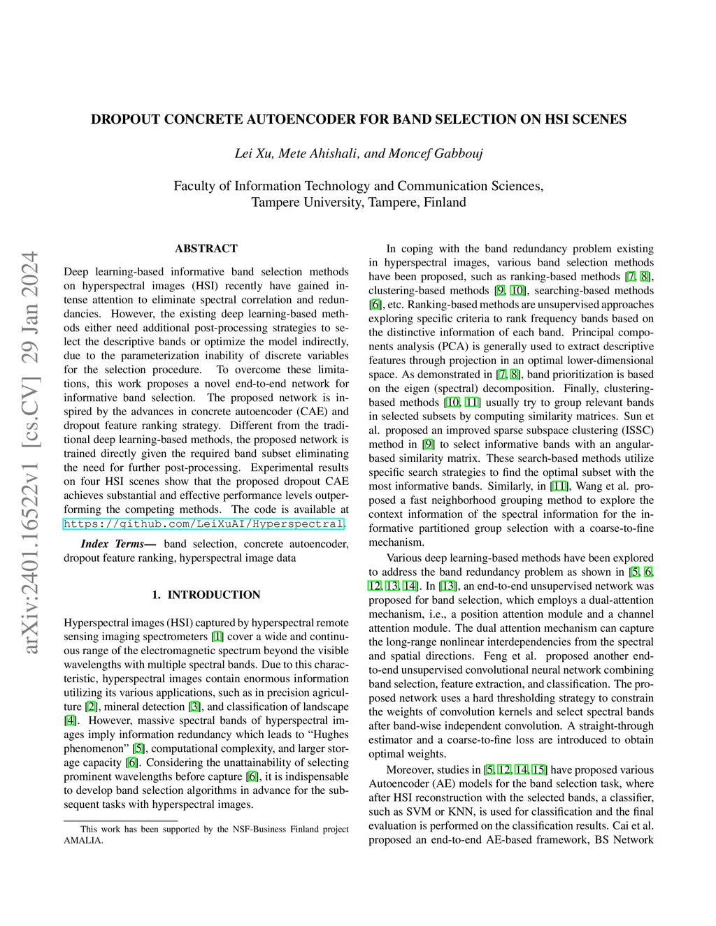 Dropout Concrete Autoencoder for Band Selection on HSI Scenes