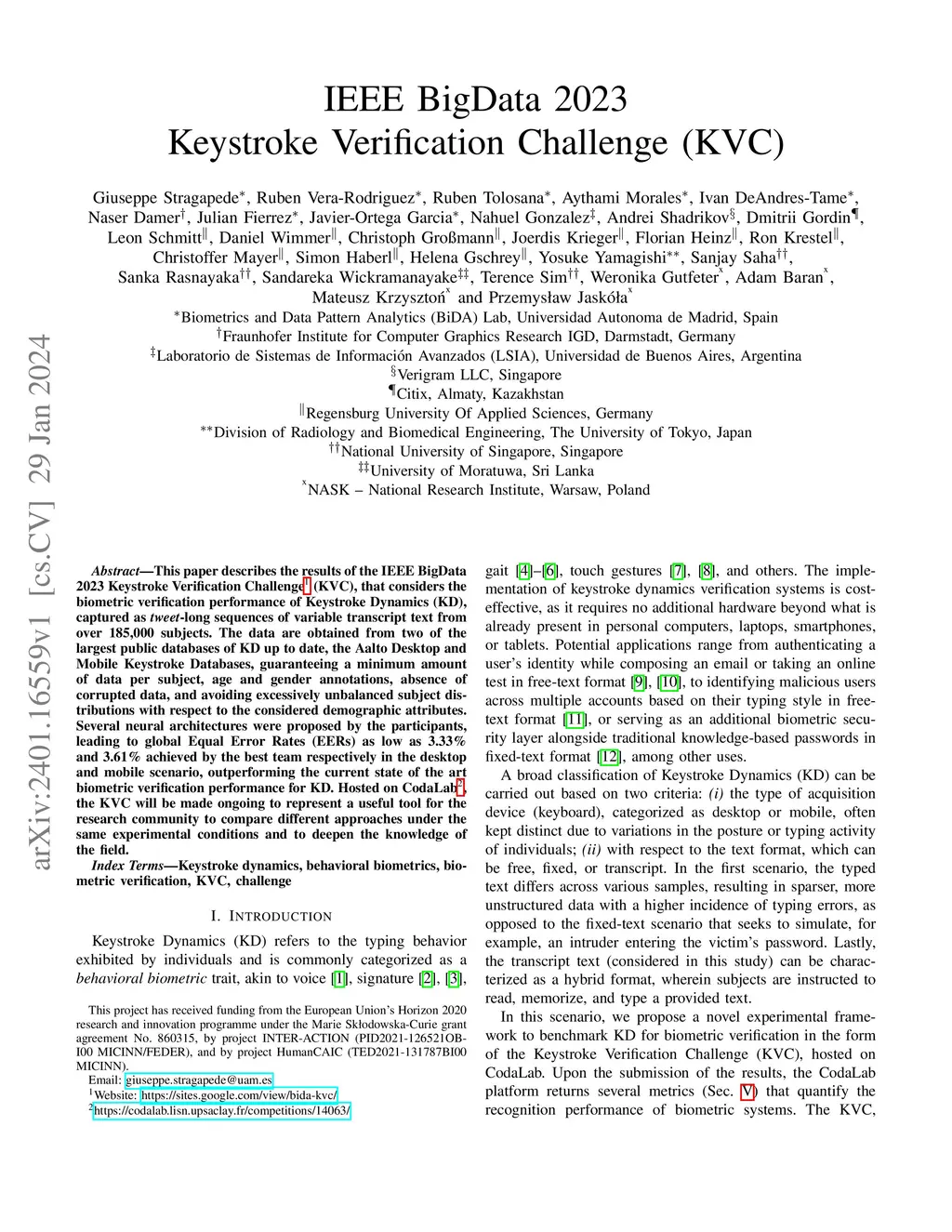 IEEE BigData 2023 Keystroke Verification Challenge (KVC)