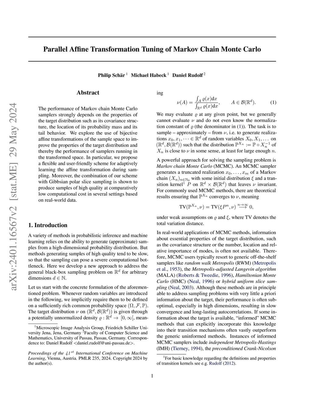 Parallel Affine Transformation Tuning of Markov Chain Monte Carlo