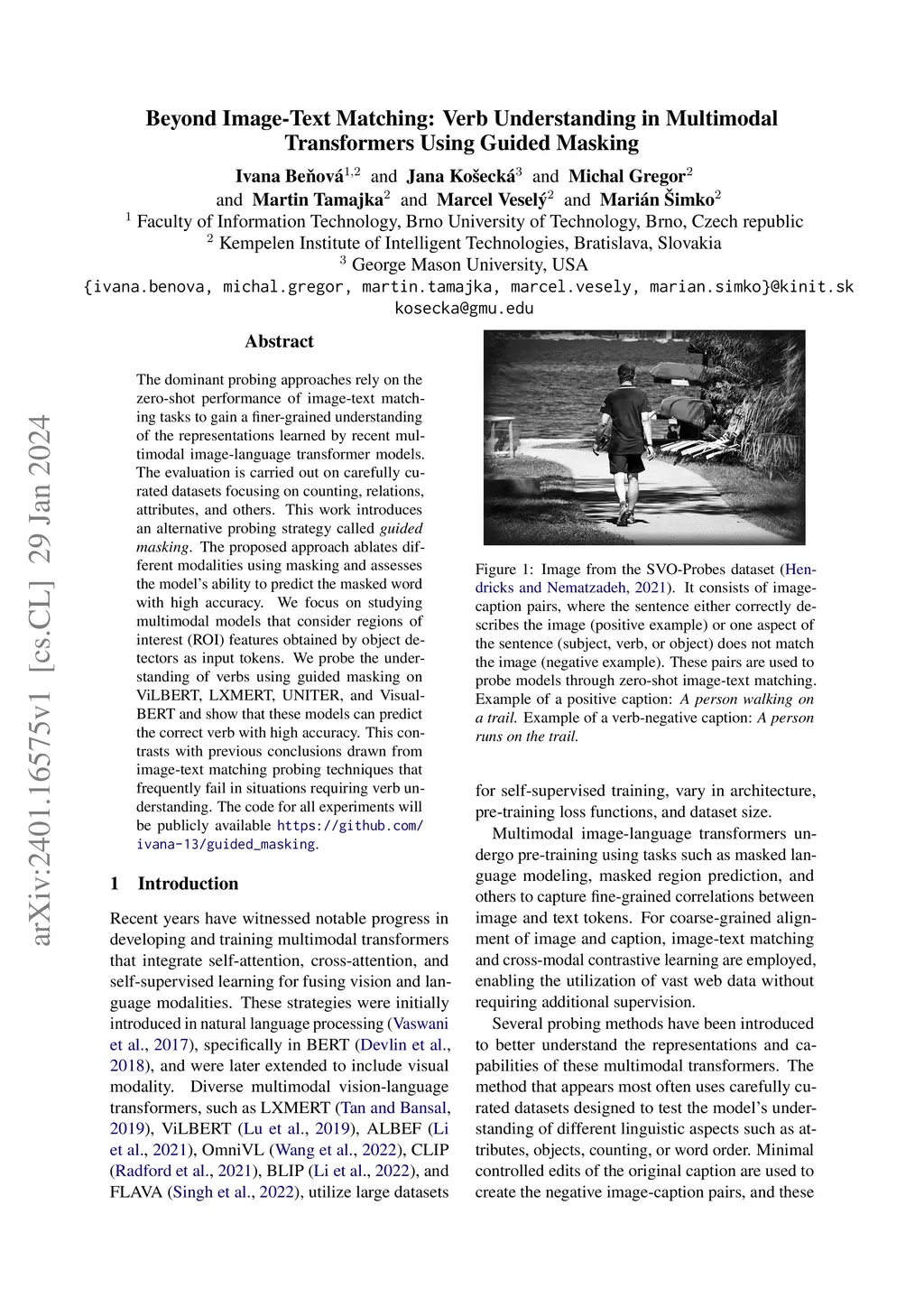 The dominant probing approaches rely on the zero-shot performance of image-text matching tasks to gain a finer-grained understanding of the representations learned by recent multimodal image-language transformer models. The evaluation is carried out on carefully curated datasets focusing on counting, relations, attributes, and others. This work introduces an alternative probing strategy called guided masking. The proposed approach ablates different modalities using masking and assesses the model's ability to predict the masked word with high accuracy. We focus on studying multimodal models that consider regions of interest (ROI) features obtained by object detectors as input tokens. We probe the understanding of verbs using guided masking on ViLBERT, LXMERT, UNITER, and VisualBERT and show that these models can predict the correct verb with high accuracy. This contrasts with previous conclusions drawn from image-text matching probing techniques that frequently fail in situations requiring verb understanding. The code for all experiments will be publicly available https://github.com/ivana-13/guided_masking.