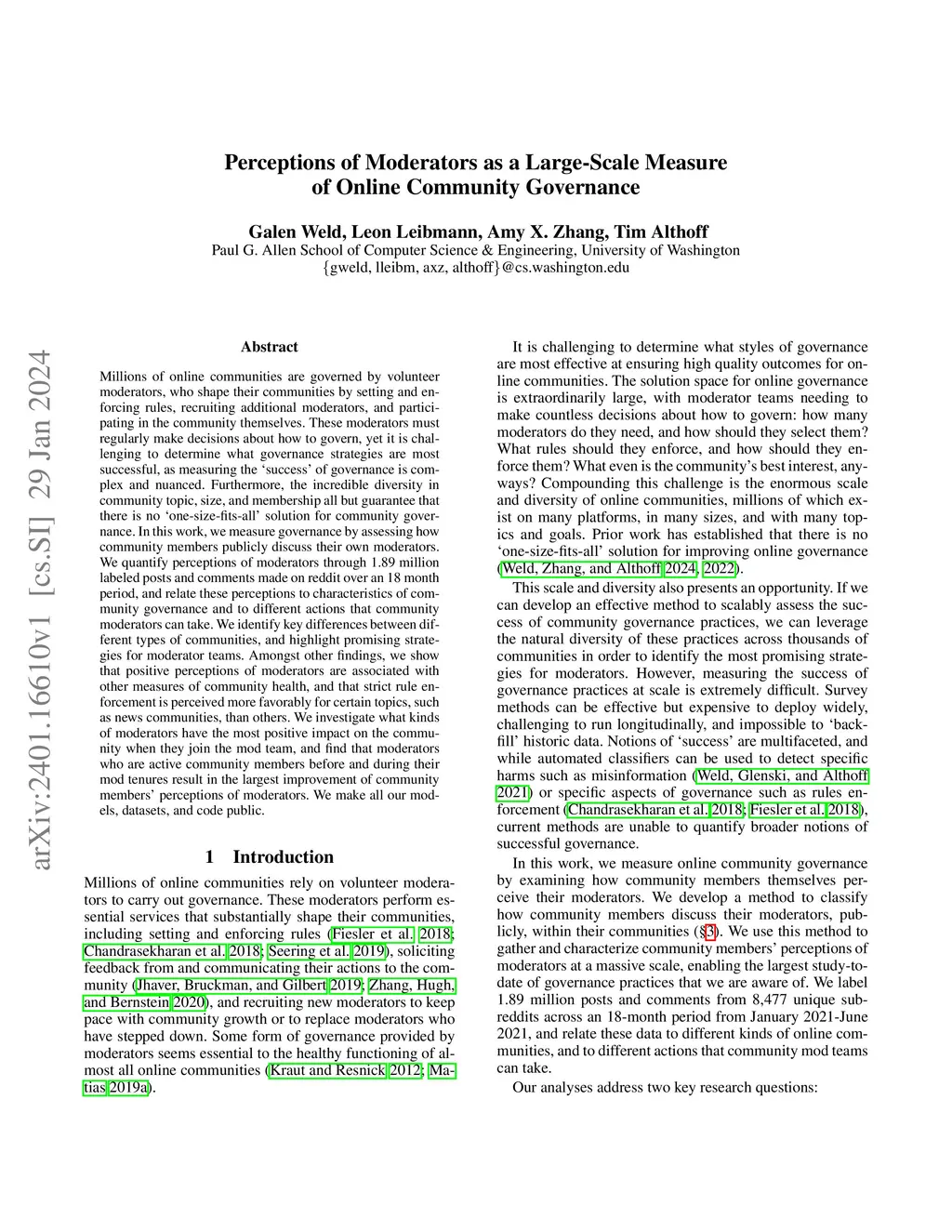 Perceptions of Moderators as a Large-Scale Measure of Online Community