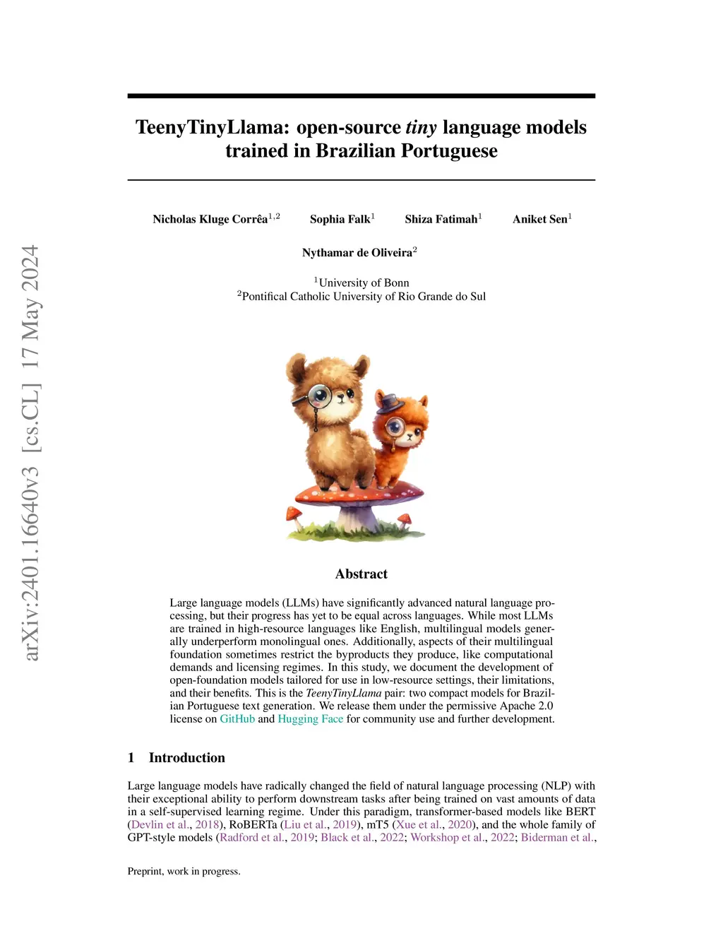 TeenyTinyLlama: open-source tiny language models trained in Brazilian