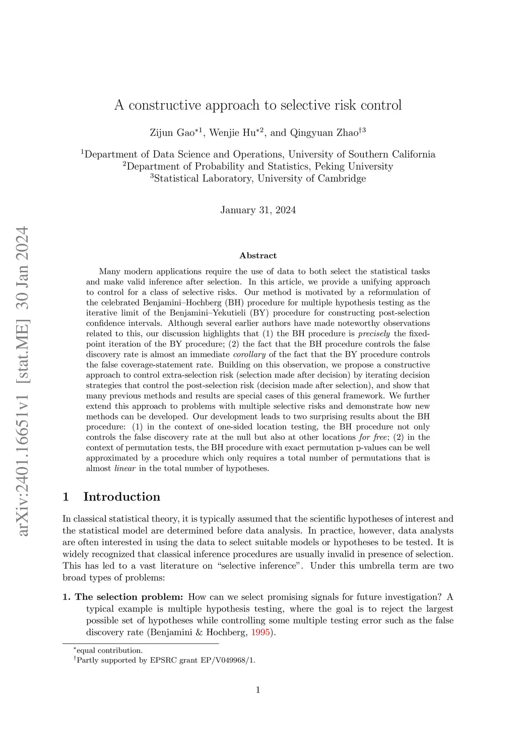Many modern applications require the use of data to both select the statistical tasks and make valid inference after selection. In this article, we provide a unifying approach to control for a class of selective risks. Our method is motivated by a reformulation of the celebrated Benjamini-Hochberg (BH) procedure for multiple hypothesis testing as the iterative limit of the Benjamini-Yekutieli (BY) procedure for constructing post-selection confidence intervals. Although several earlier authors have made noteworthy observations related to this, our discussion highlights that (1) the BH procedure is precisely the fixed-point iteration of the BY procedure; (2) the fact that the BH procedure controls the false discovery rate is almost an immediate corollary of the fact that the BY procedure controls the false coverage-statement rate. Building on this observation, we propose a constructive approach to control extra-selection risk (selection made after decision) by iterating decision strategies that control the post-selection risk (decision made after selection), and show that many previous methods and results are special cases of this general framework. We further extend this approach to problems with multiple selective risks and demonstrate how new methods can be developed. Our development leads to two surprising results about the BH procedure: (1) in the context of one-sided location testing, the BH procedure not only controls the false discovery rate at the null but also at other locations for free; (2) in the context of permutation tests, the BH procedure with exact permutation p-values can be well approximated by a procedure which only requires a total number of permutations that is almost linear in the total number of hypotheses.