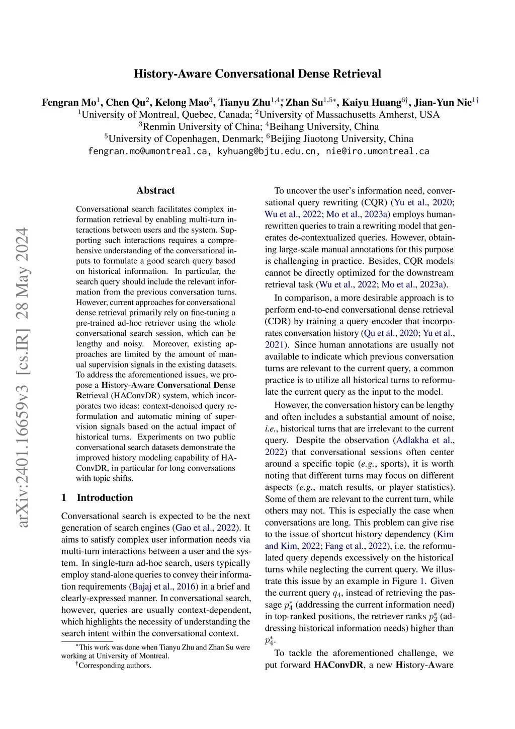 History-Aware Conversational Dense Retrieval