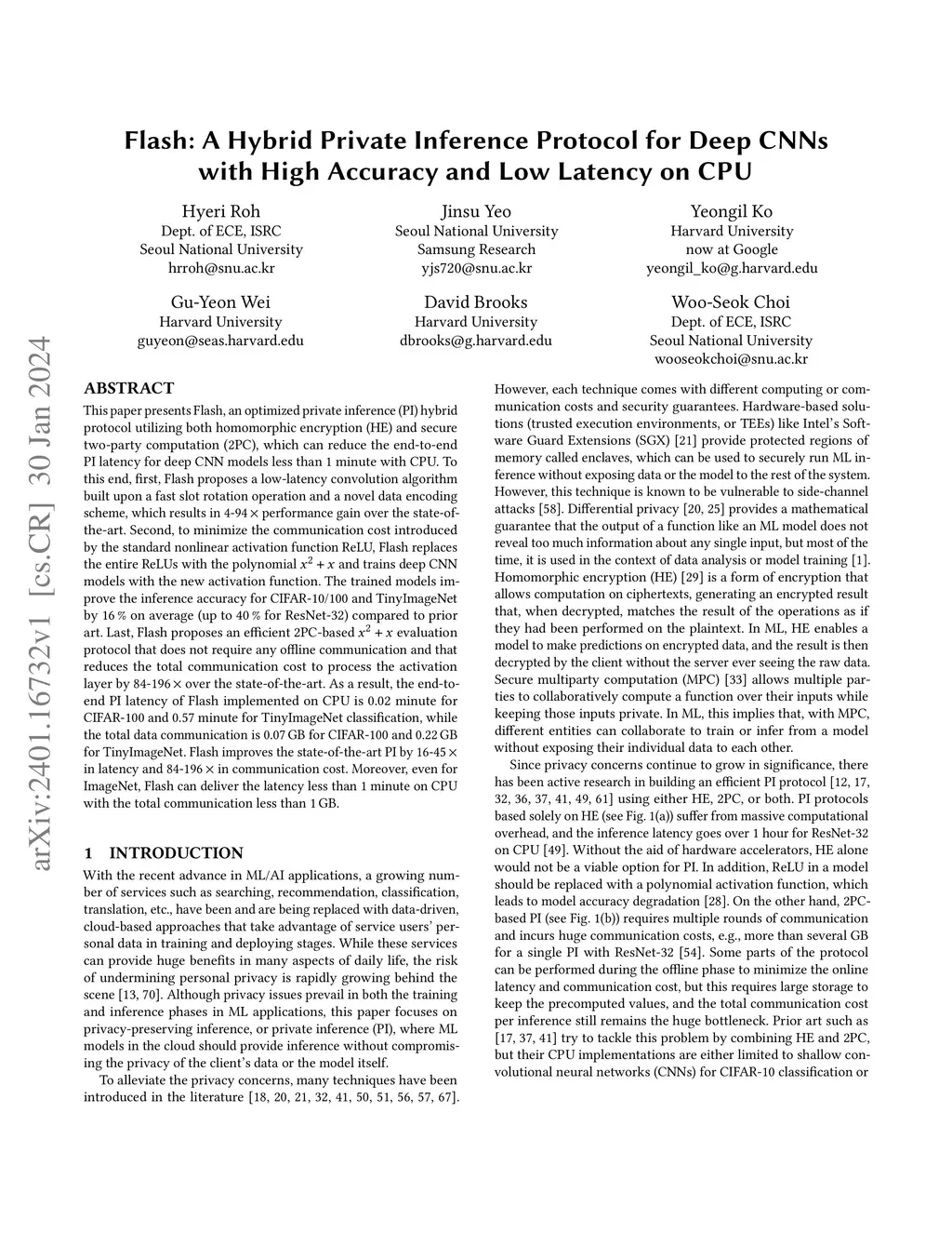 Flash: A Hybrid Private Inference Protocol for Deep CNNs with High Accuracy and Low Latency on CPU