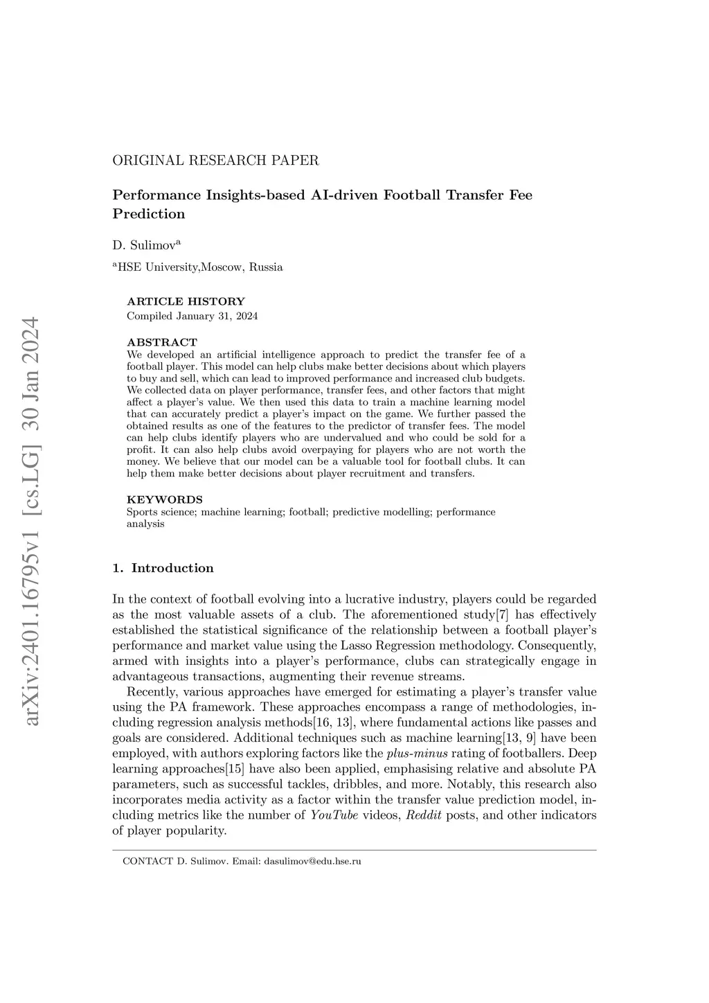 Performance Insights-based AI-driven Football Transfer Fee Prediction