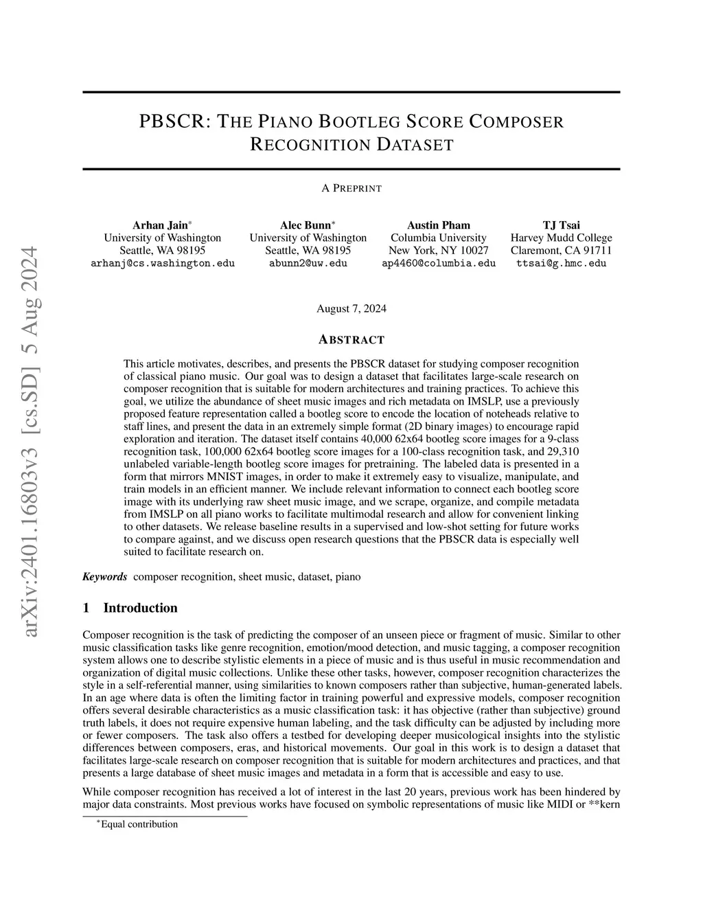 PBSCSR: The Piano Bootleg Score Composer Style Recognition Dataset