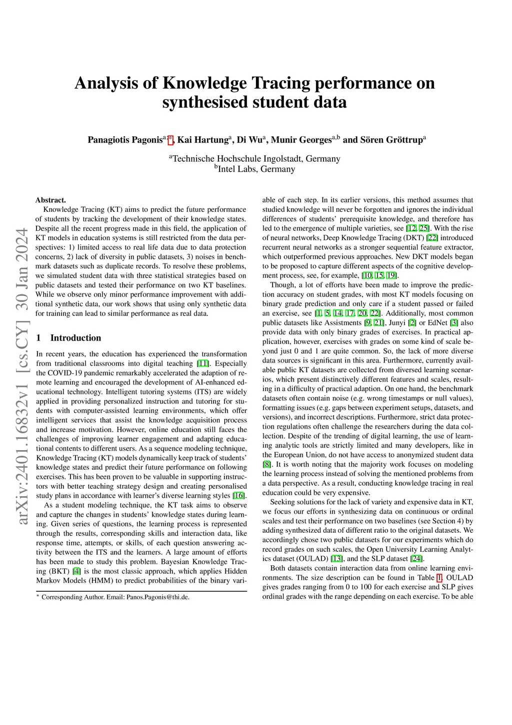 Knowledge Tracing (KT) aims to predict the future performance of students by tracking the development of their knowledge states. Despite all the recent progress made in this field, the application of KT models in education systems is still restricted from the data perspectives: 1) limited access to real life data due to data protection concerns, 2) lack of diversity in public datasets, 3) noises in benchmark datasets such as duplicate records. To resolve these problems, we simulated student data with three statistical strategies based on public datasets and tested their performance on two KT baselines. While we observe only minor performance improvement with additional synthetic data, our work shows that using only synthetic data for training can lead to similar performance as real data.