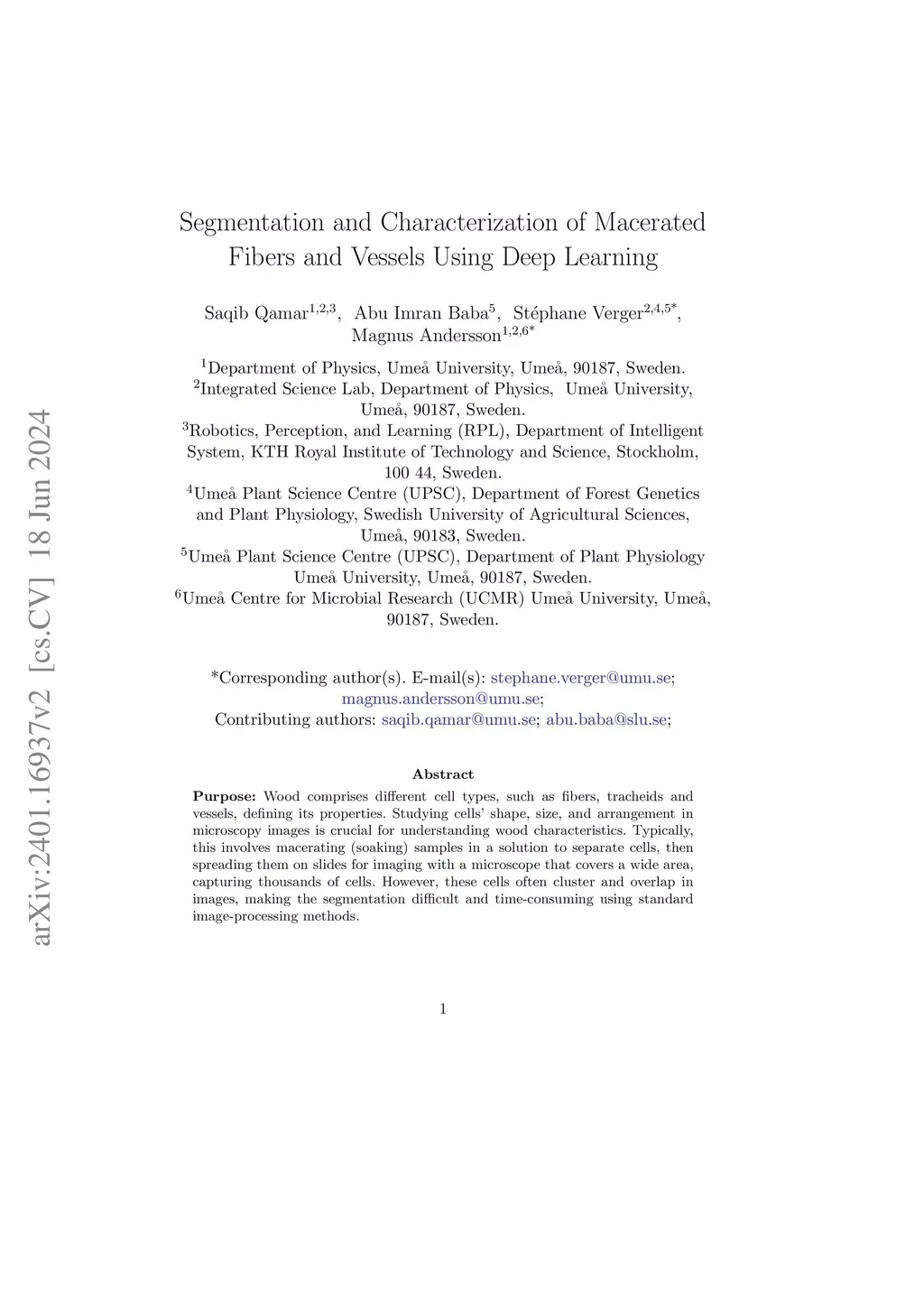 Segmentation and Characterization of Macerated Fibers and Vessels Using