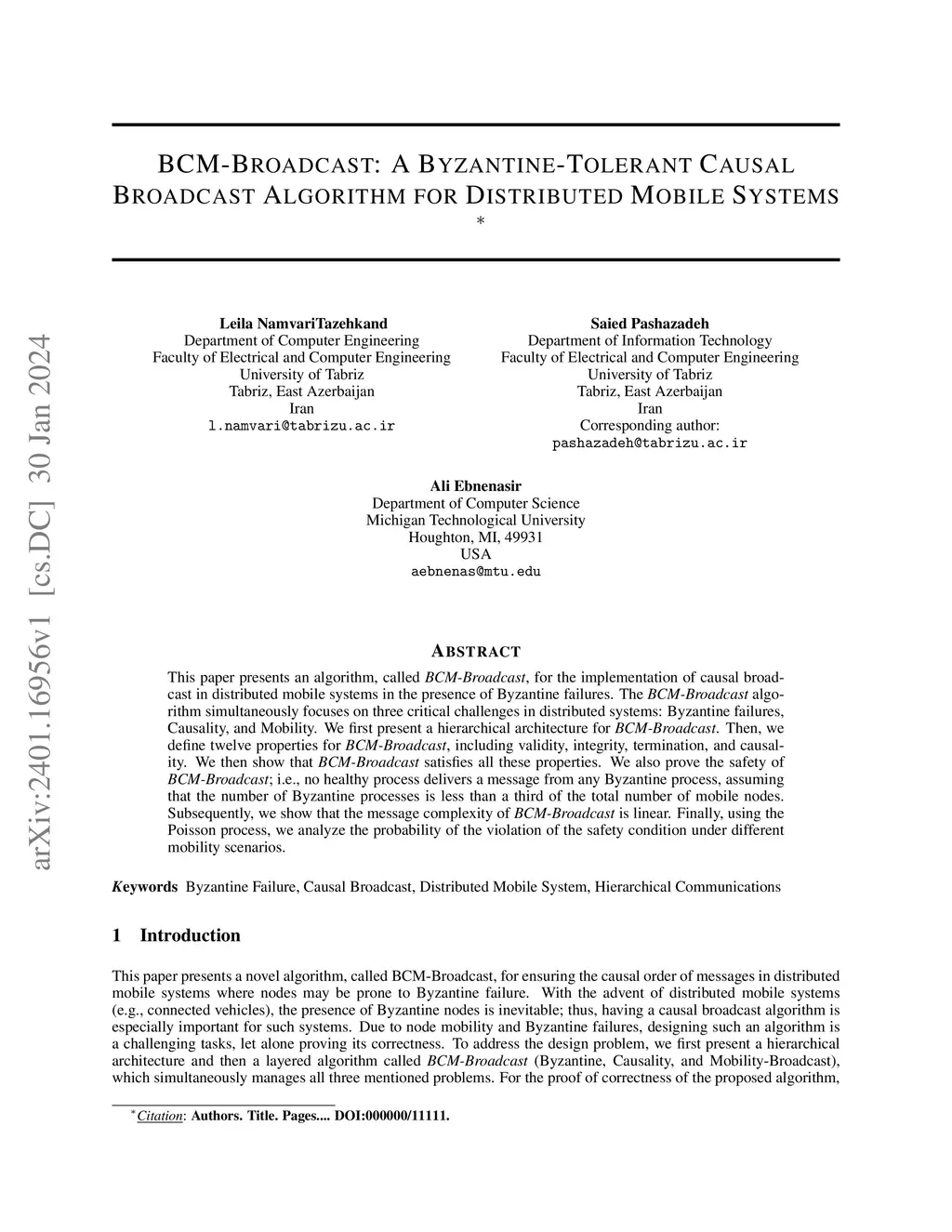 BCM-Broadcast: A Byzantine-Tolerant Causal Broadcast Algorithm for