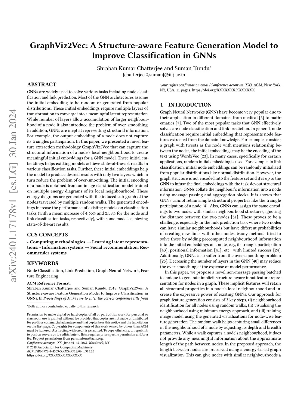 GNNs are widely used to solve various tasks including node classification and link prediction. Most of the GNN architectures assume the initial embedding to be random or generated from popular distributions. These initial embeddings require multiple layers of transformation to converge into a meaningful latent representation. While number of layers allow accumulation of larger neighbourhood of a node it also introduce the problem of over-smoothing. In addition, GNNs are inept at representing structural information. For example, the output embedding of a node does not capture its triangles participation. In this paper, we presented a novel feature extraction methodology GraphViz2Vec that can capture the structural information of a node's local neighbourhood to create meaningful initial embeddings for a GNN model. These initial embeddings helps existing models achieve state-of-the-art results in various classification tasks. Further, these initial embeddings help the model to produce desired results with only two layers which in turn reduce the problem of over-smoothing. The initial encoding of a node is obtained from an image classification model trained on multiple energy diagrams of its local neighbourhood. These energy diagrams are generated with the induced sub-graph of the nodes traversed by multiple random walks. The generated encodings increase the performance of existing models on classification tasks (with a mean increase of and for the node and link classification tasks, respectively), with some models achieving state-of-the-art results.