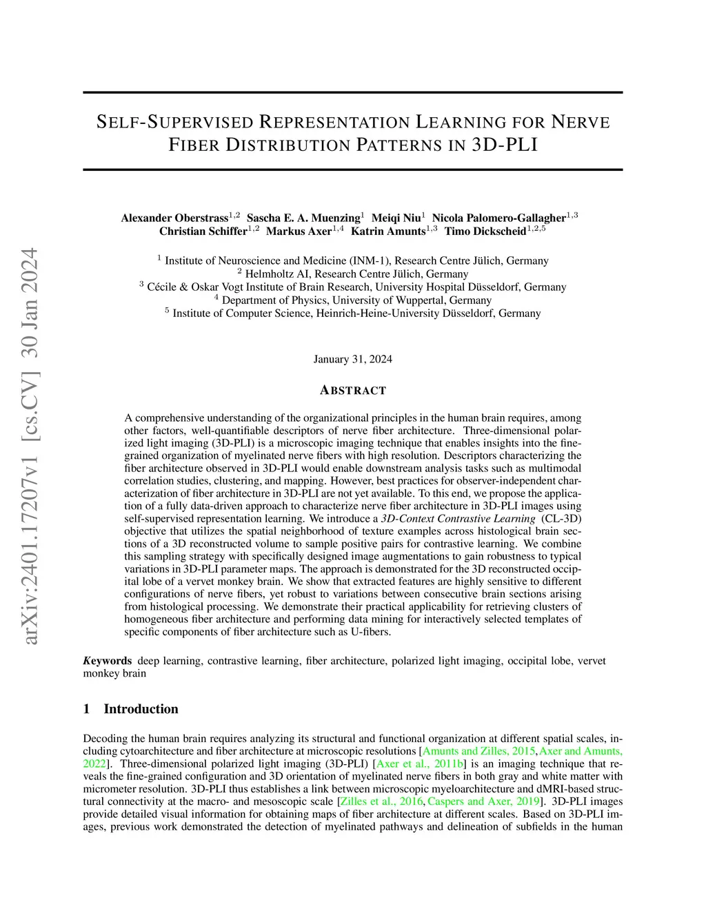 Self-Supervised Representation Learning for Nerve Fiber Distribution Patterns in 3D-PLI