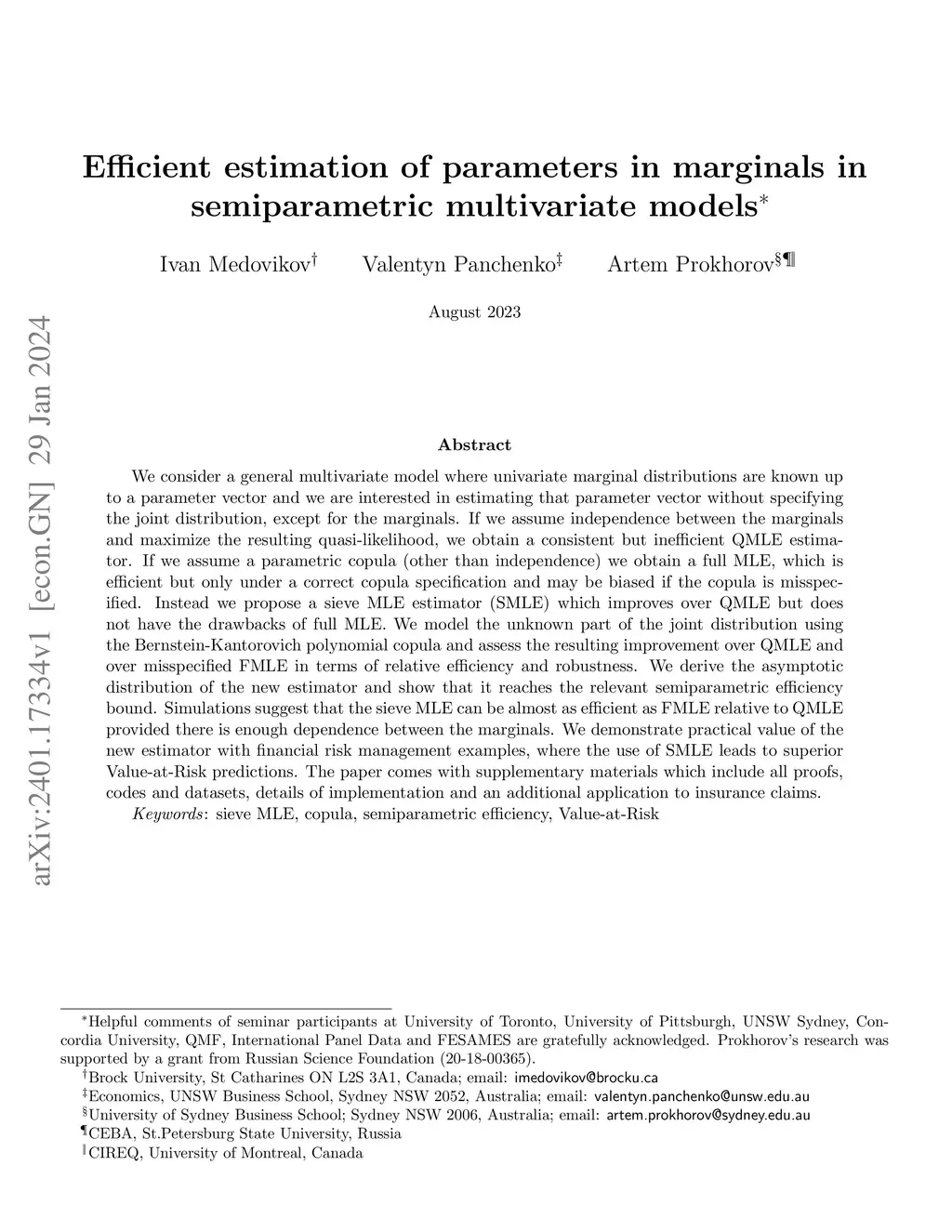 We consider a general multivariate model where univariate marginal distributions are known up to a parameter vector and we are interested in estimating that parameter vector without specifying the joint distribution, except for the marginals. If we assume independence between the marginals and maximize the resulting quasi-likelihood, we obtain a consistent but inefficient QMLE estimator. If we assume a parametric copula (other than independence) we obtain a full MLE, which is efficient but only under a correct copula specification and may be biased if the copula is misspecified. Instead we propose a sieve MLE estimator (SMLE) which improves over QMLE but does not have the drawbacks of full MLE. We model the unknown part of the joint distribution using the Bernstein-Kantorovich polynomial copula and assess the resulting improvement over QMLE and over misspecified FMLE in terms of relative efficiency and robustness. We derive the asymptotic distribution of the new estimator and show that it reaches the relevant semiparametric efficiency bound. Simulations suggest that the sieve MLE can be almost as efficient as FMLE relative to QMLE provided there is enough dependence between the marginals. We demonstrate practical value of the new estimator with several applications. First, we apply SMLE in an insurance context where we build a flexible semi-parametric claim loss model for a scenario where one of the variables is censored. As in simulations, the use of SMLE leads to tighter parameter estimates. Next, we consider financial risk management examples and show how the use of SMLE leads to superior Value-at-Risk predictions. The paper comes with an online archive which contains all codes and datasets.