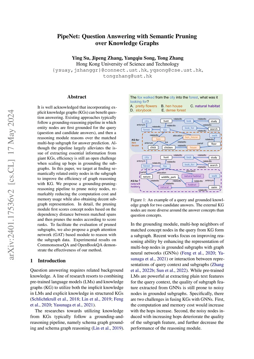 PipeNet: Question Answering with Semantic Pruning over Knowledge Graphs