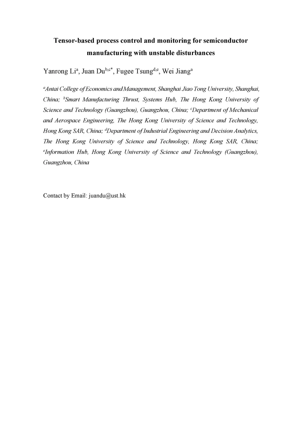 Tensor-based process control and monitoring for semiconductor