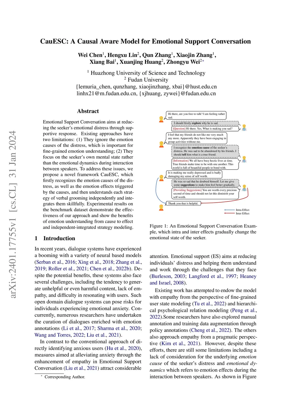 CauESC: A Causal Aware Model for Emotional Support Conversation