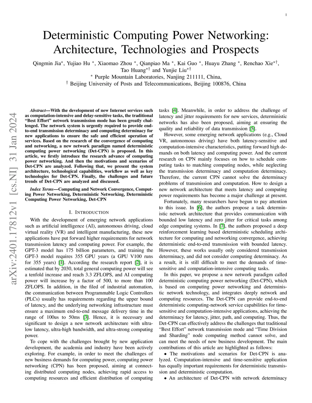 Deterministic Computing Power Networking: Architecture, Technologies and