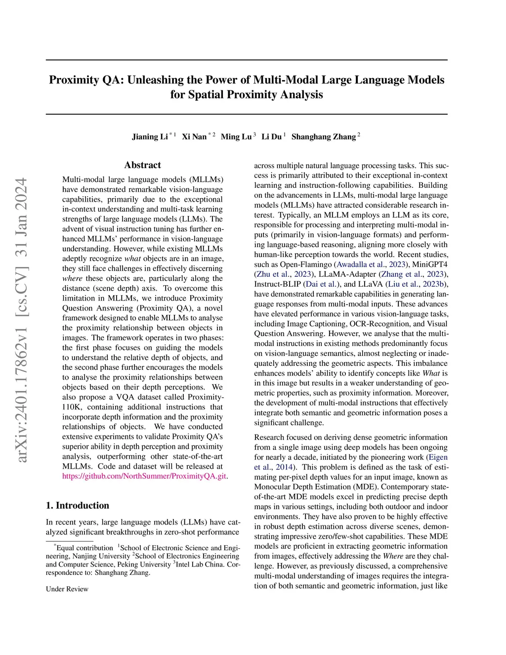 Proximity QA: Unleashing the Power of Multi-Modal Large Language Models