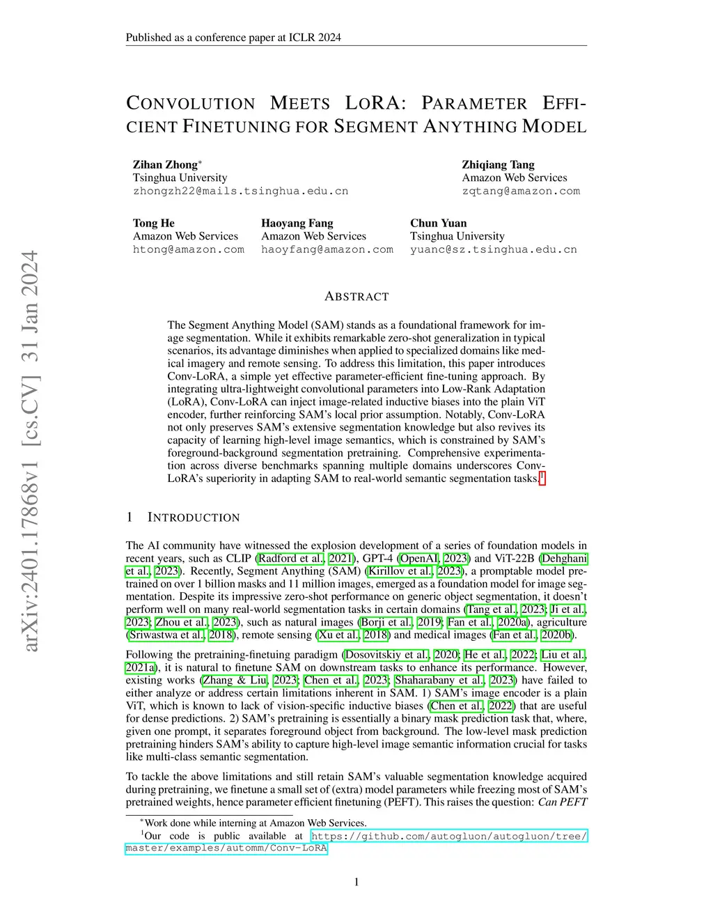 Convolution Meets LoRA: Parameter Efficient Finetuning for Segment