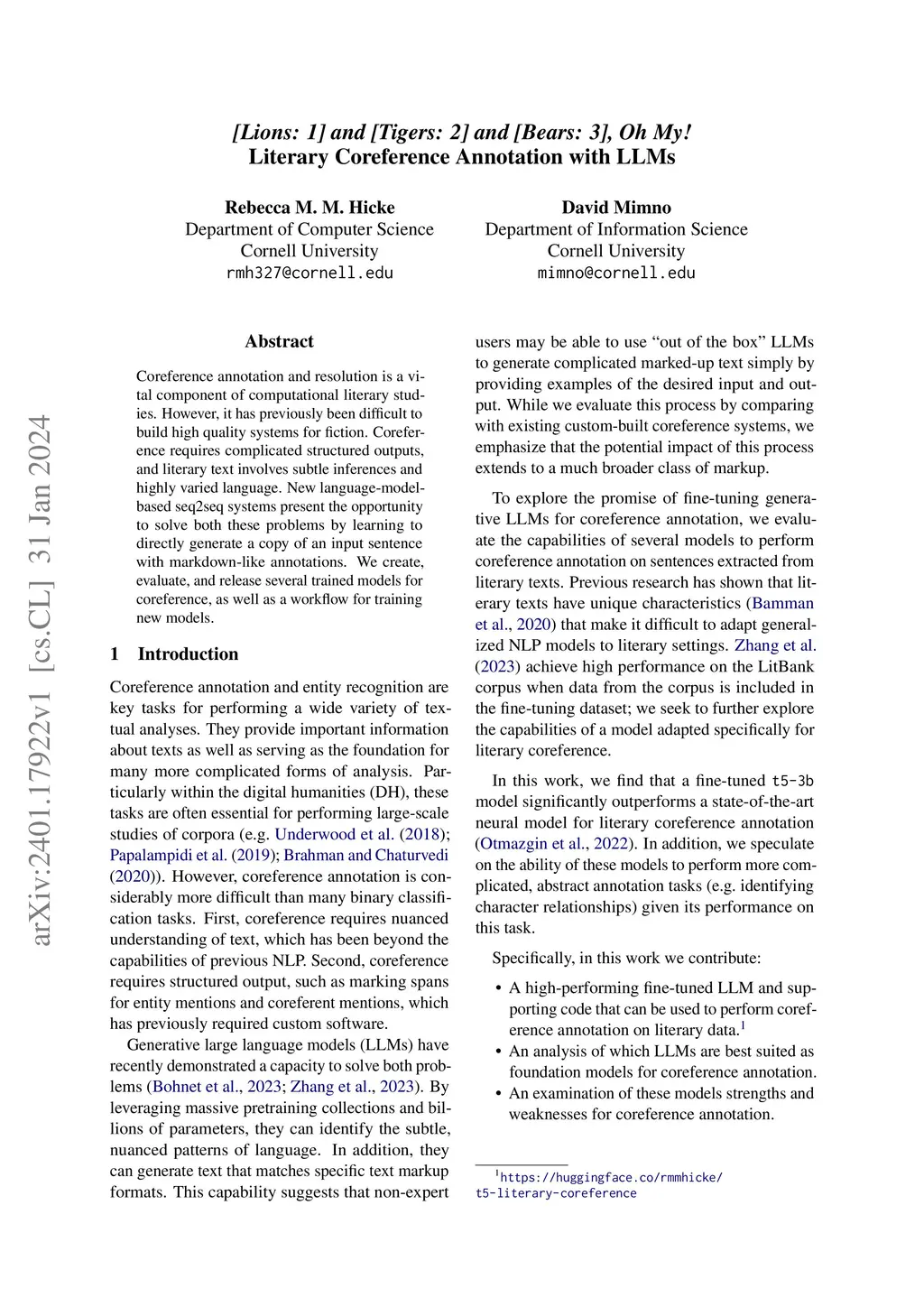 [Lions: 1] and [Tigers: 2] and [Bears: 3], Oh My! Literary Coreference